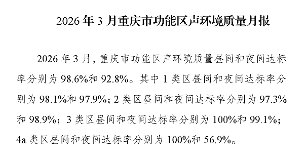 2026年3月重庆市功能区声环境质量月报