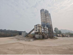 永川区朱沱镇交港混凝土搅拌站:厂内积尘严重,砂石骨料露天堆放。
