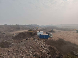 永川区港桥产业园笋桥工业区福主路道路工程弃土场临时用地工地:未落实重污染应急减排措施。破碎露天作业无控尘措施,裸土未覆盖,物料露天堆放。