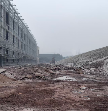 涪陵区白涛工业园区原有机硅项目工地:工地道路扬尘严重,砂石破碎无控尘措施。
