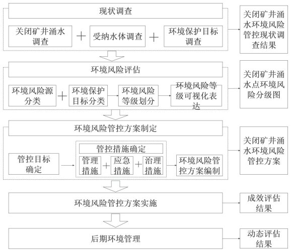 关闭矿井涌水特征污染物具有跨介质迁移特点,环境风险与涌水通道、受纳水体、环境保护目标均有关联,管控方案涵盖治理、管理和应急等不同措施,开展环境风险管控时,应从区域(流域)的角度全面、系统考虑,整体推进环境风险管控工作,有效防范环境风险。