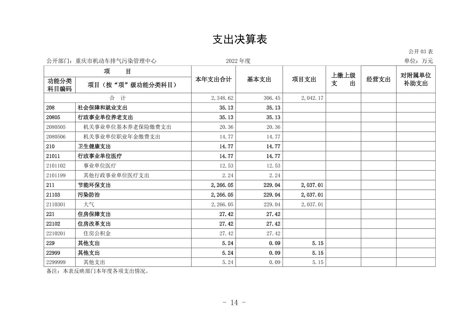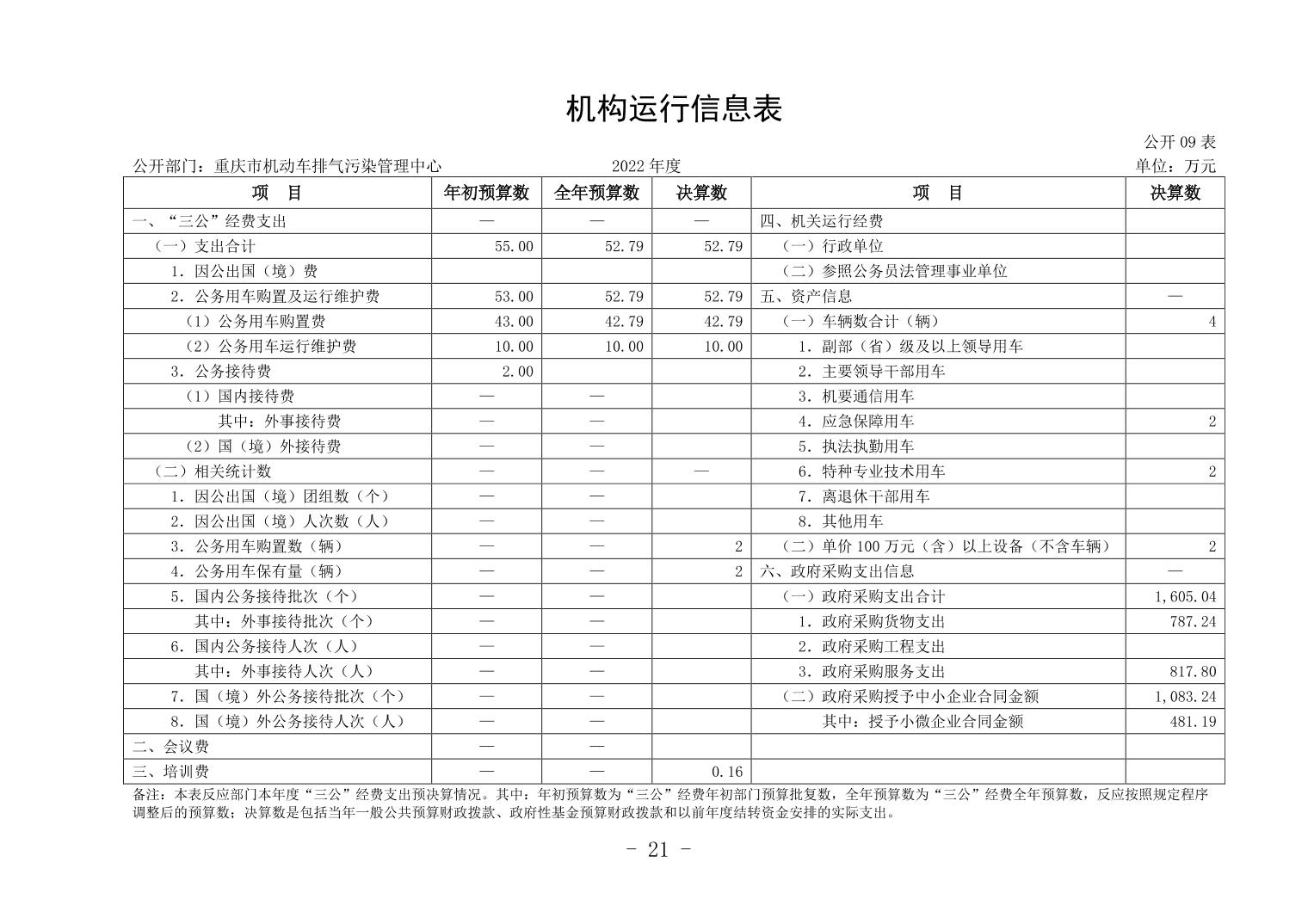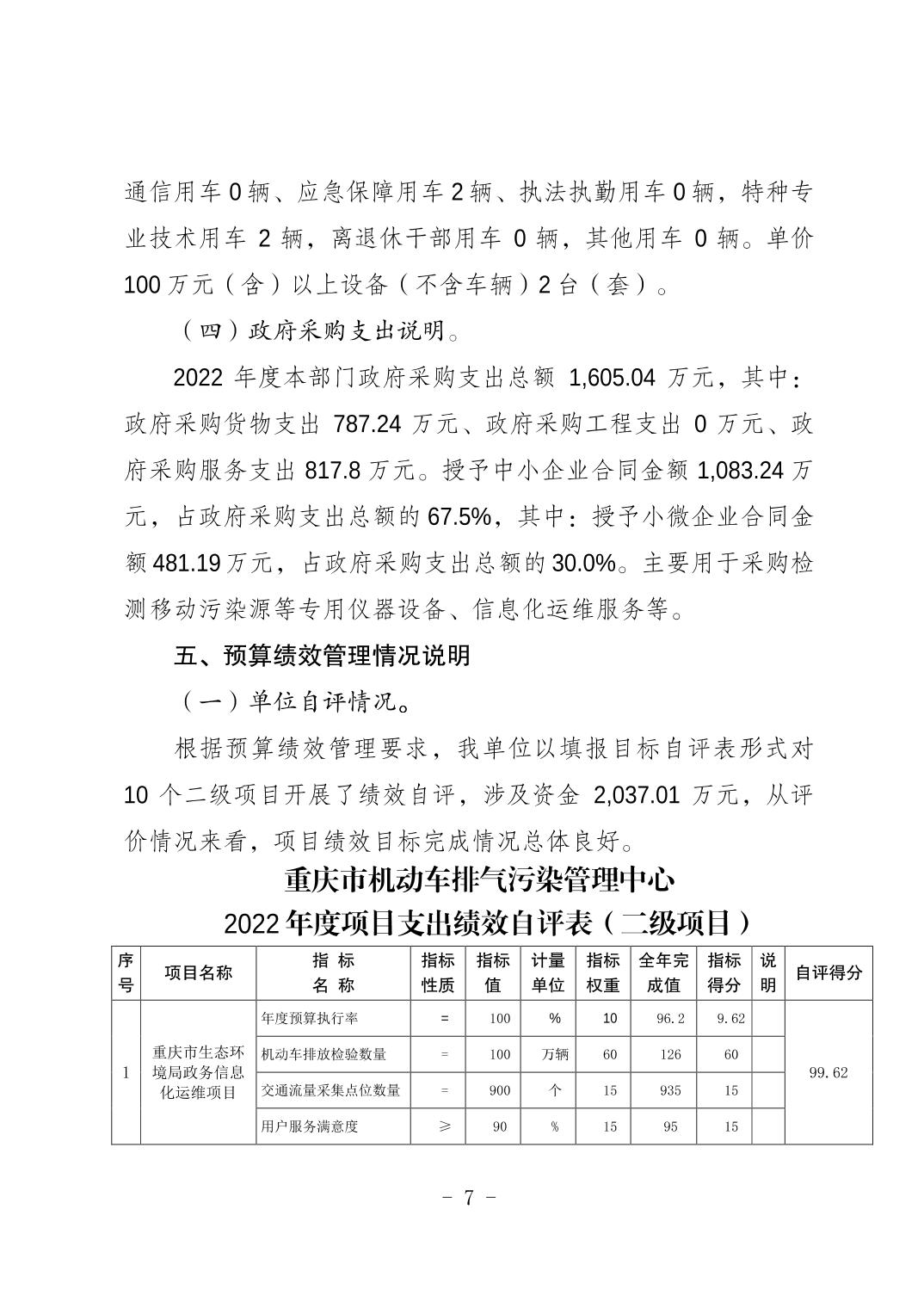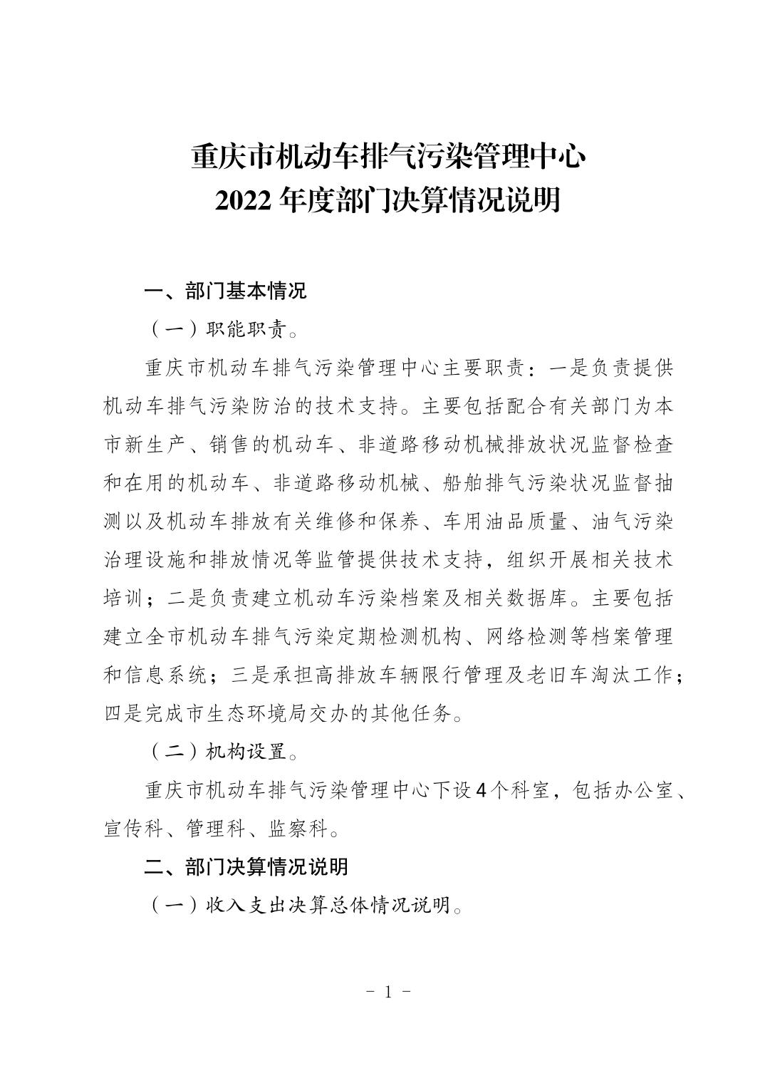 重庆市机动车排气污染管理中心2022年度部门决算情况说明