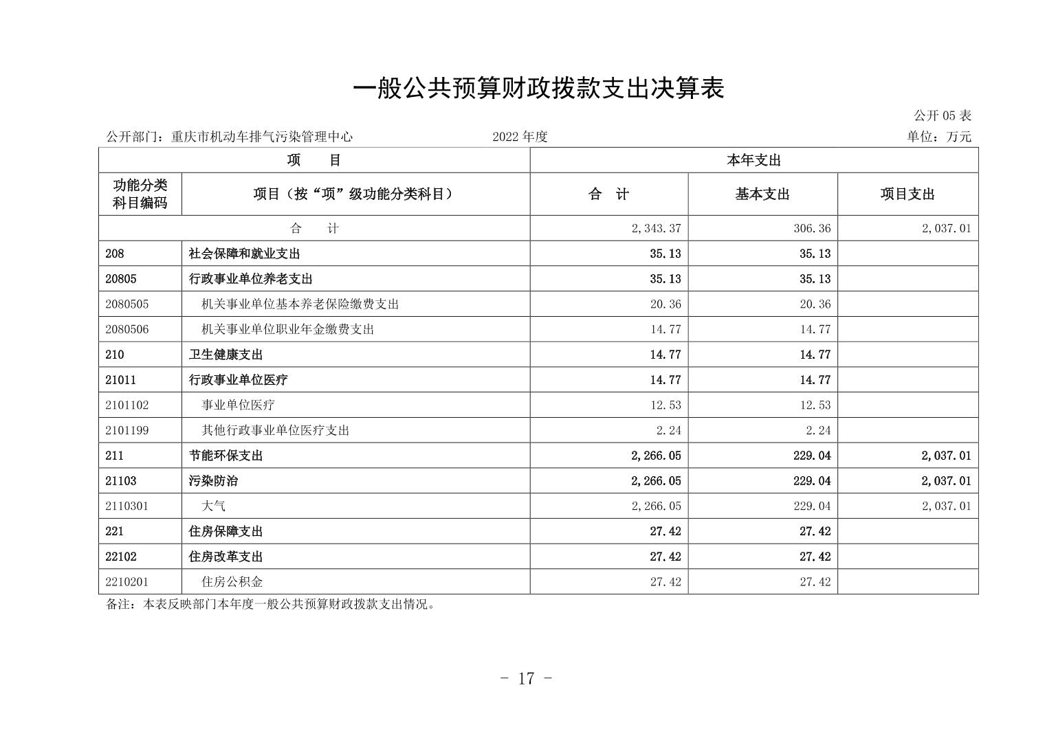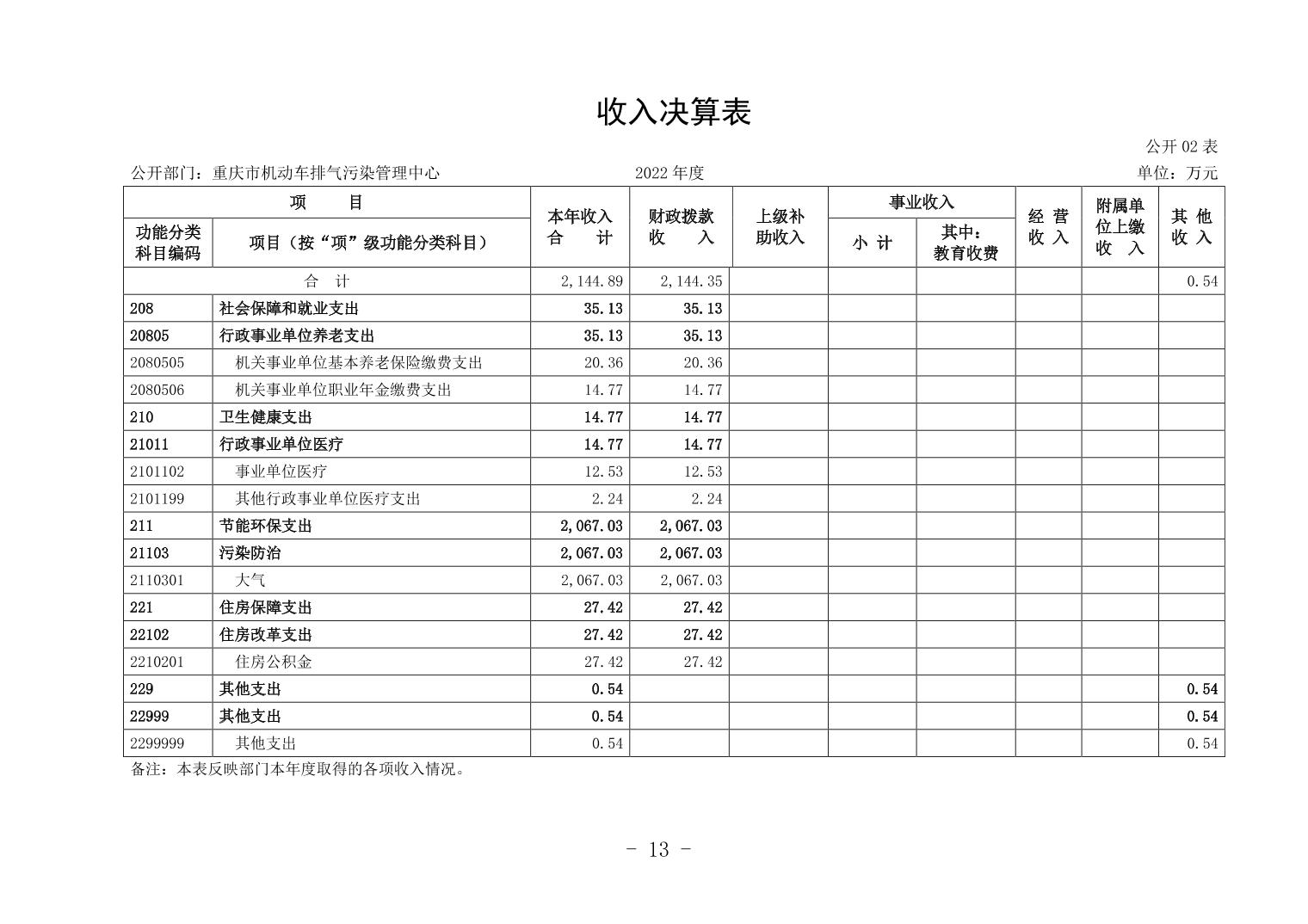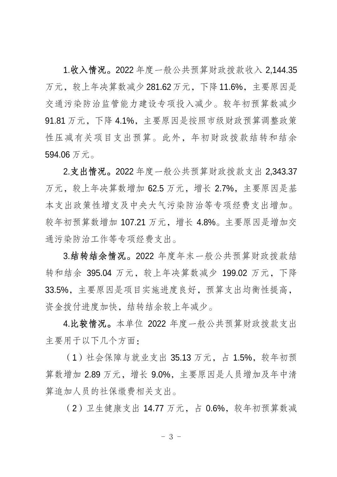 重庆市机动车排气污染管理中心2022年度部门决算情况说明