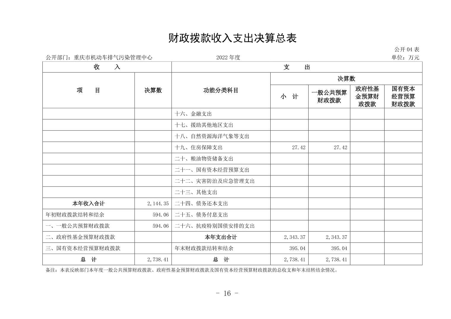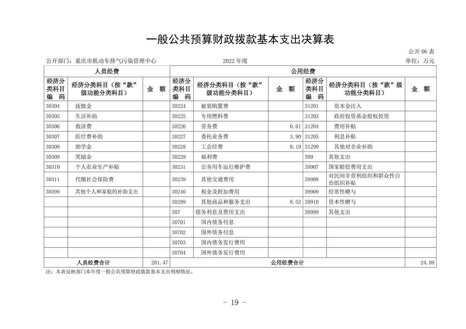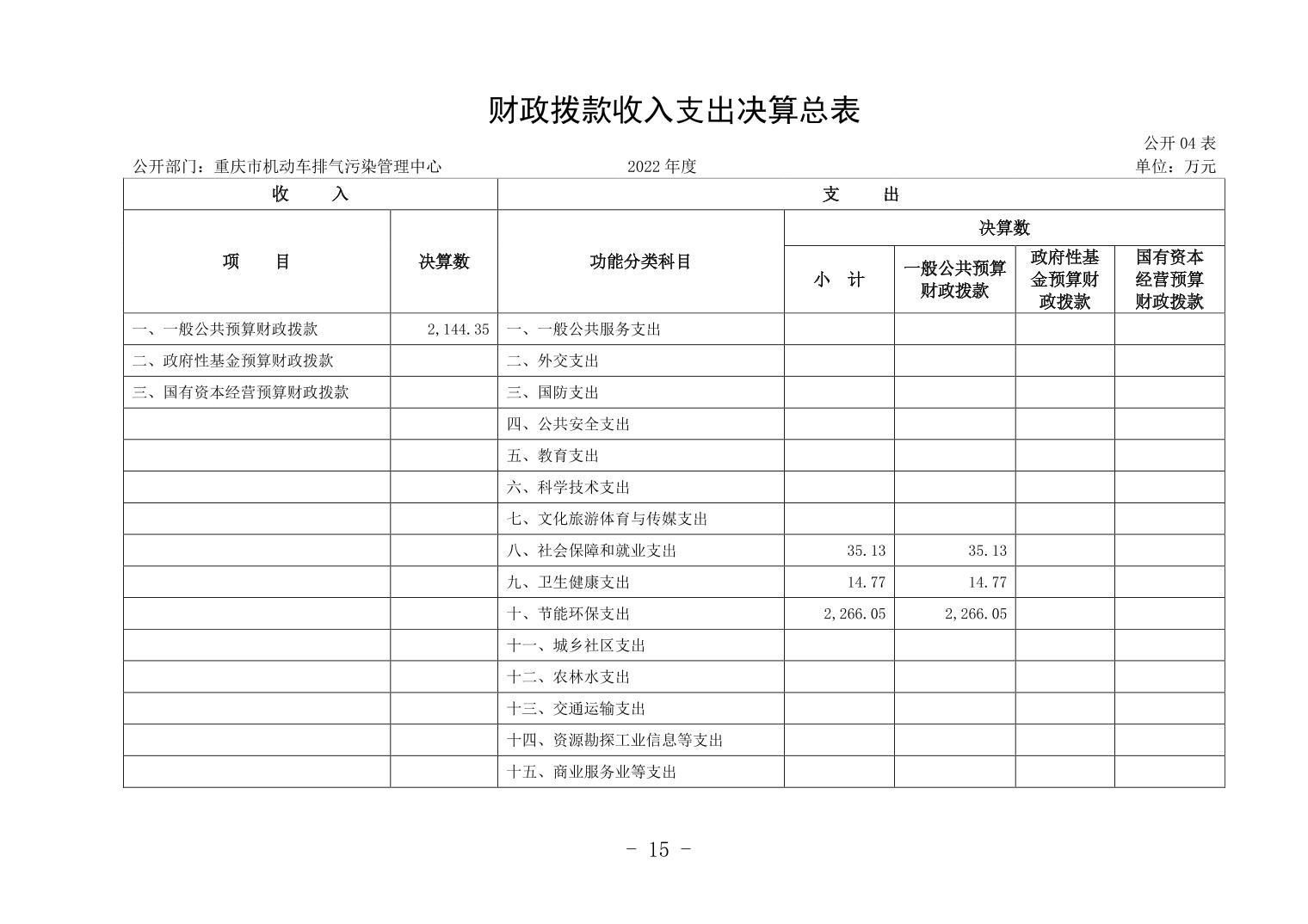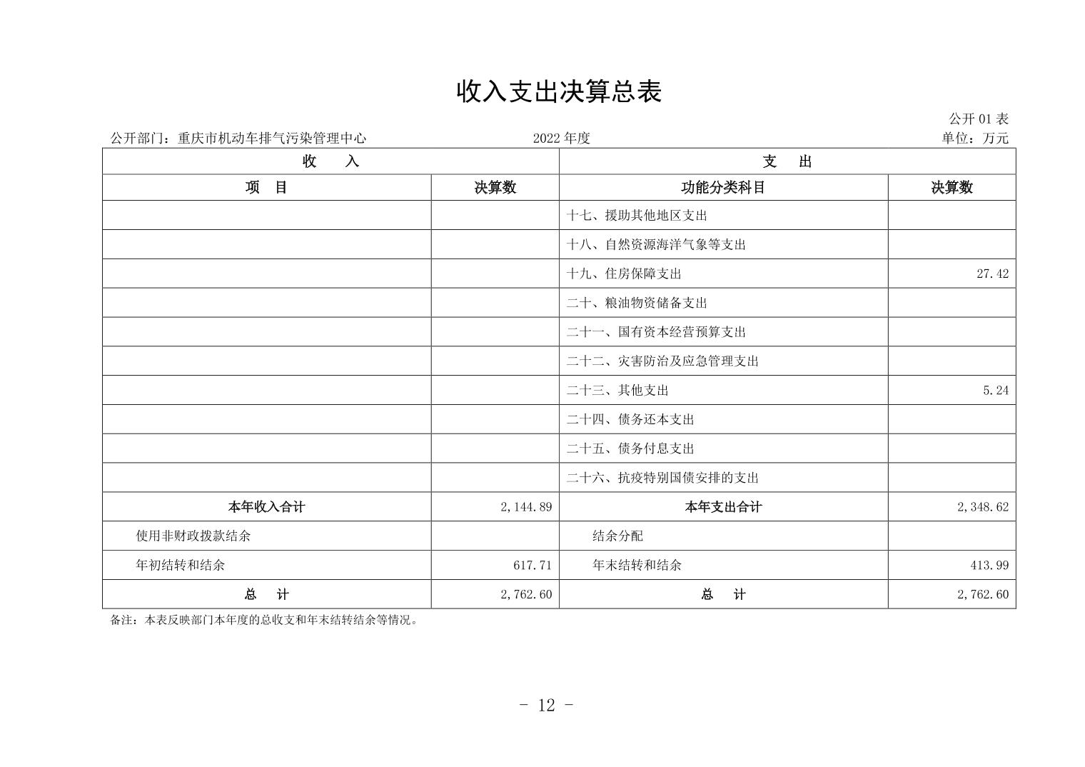 重庆市机动车排气污染管理中心2022年度部门决算情况说明