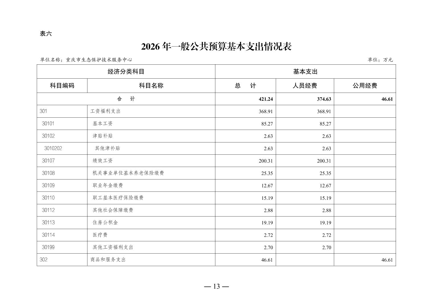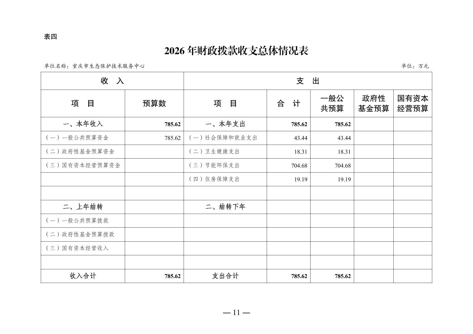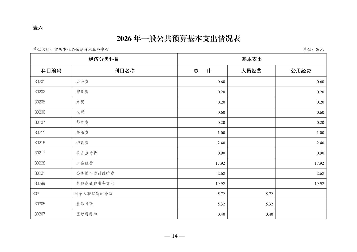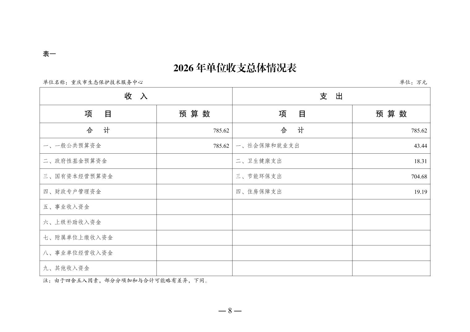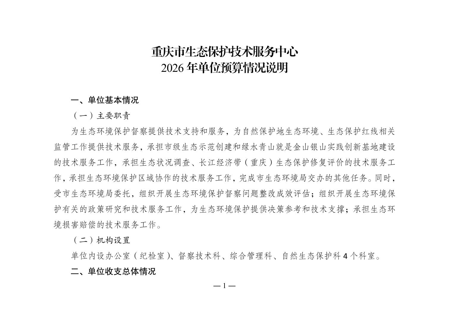 重庆市生态保护技术服务中心2026年单位预算情况说明