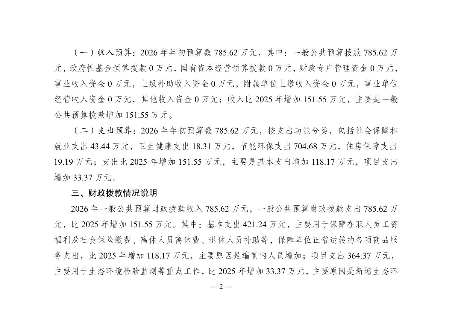 | [ 主题分类 ] | 环境监测、保护与治理 | [ 体裁分类 ] | 财政预算、决算 |