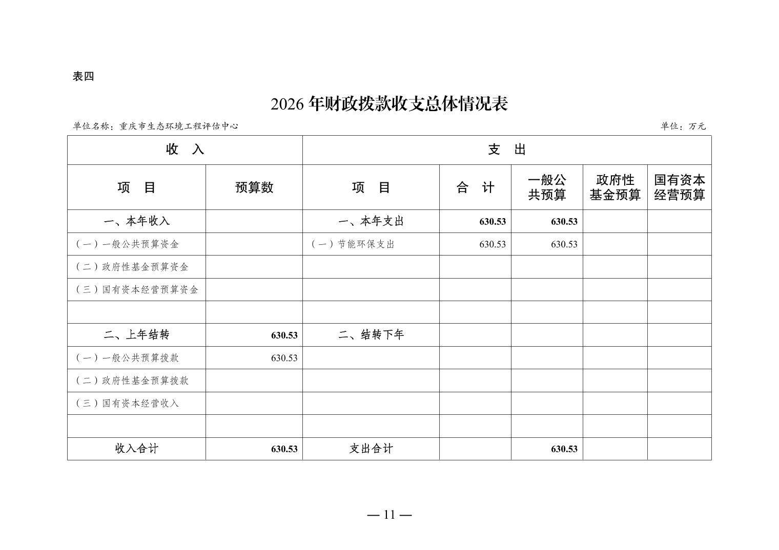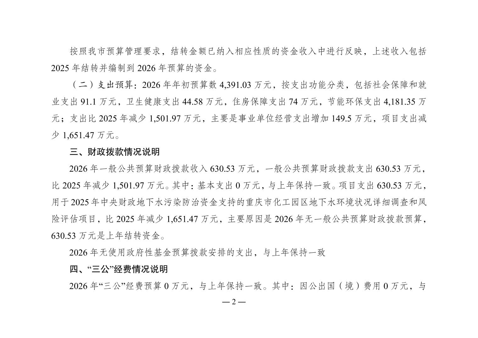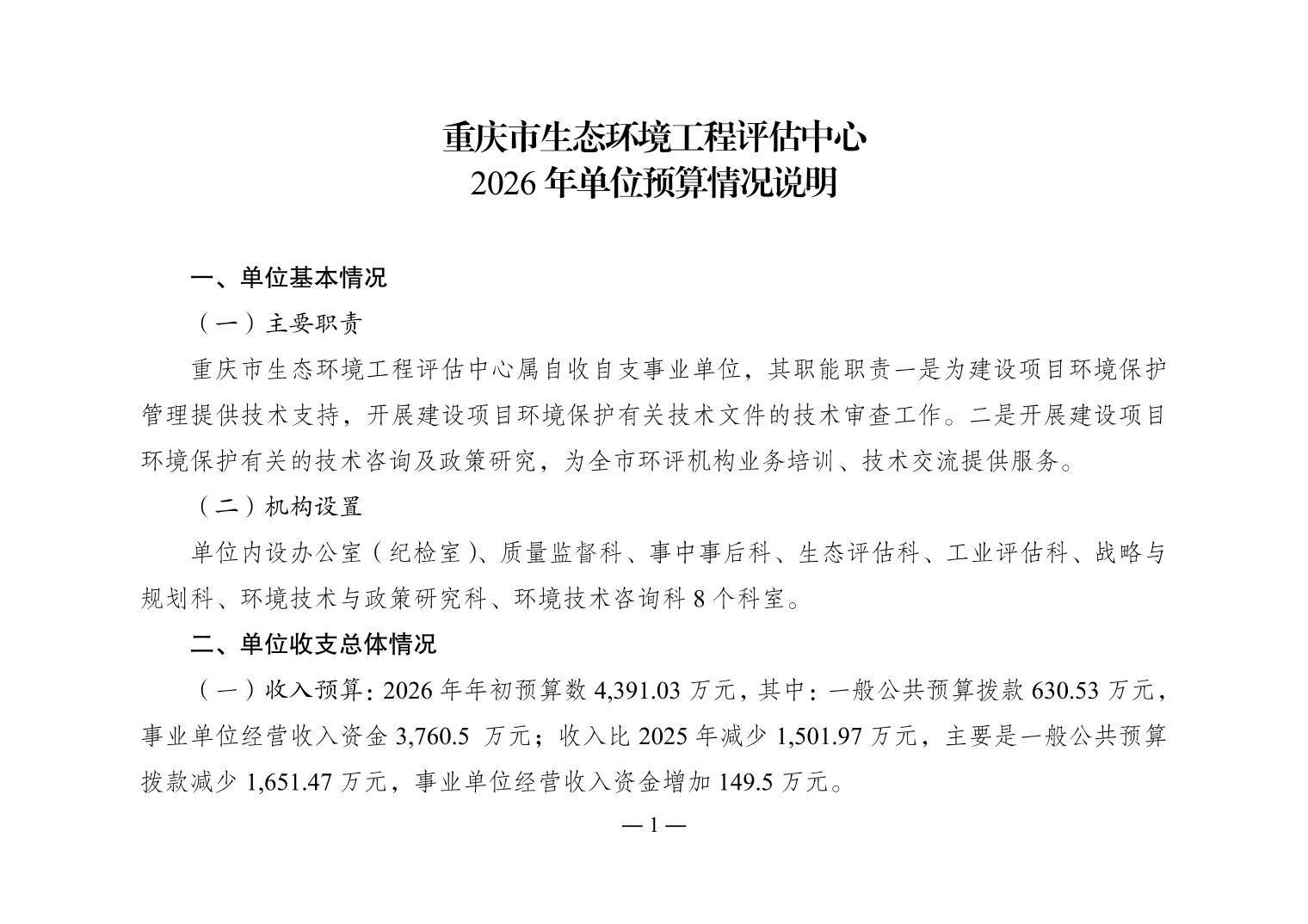 重庆市生态环境工程评估中心2026年单位预算情况说明