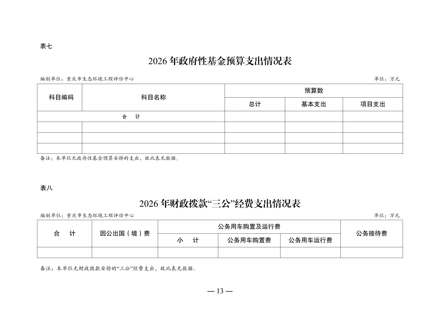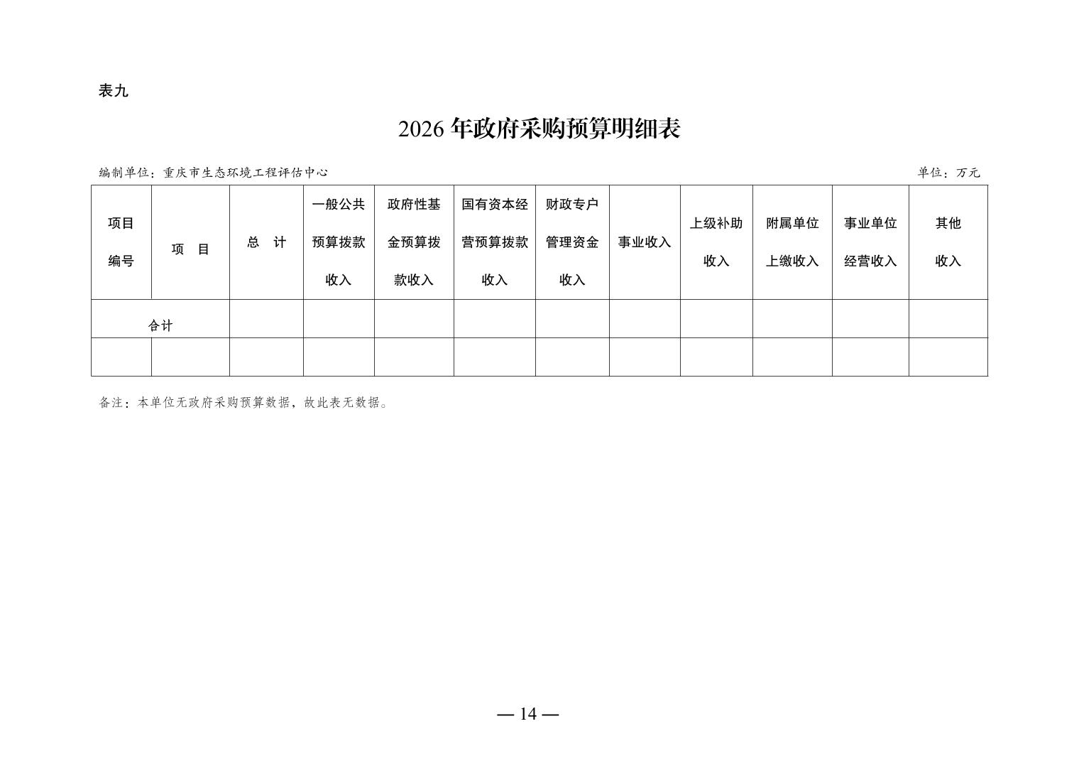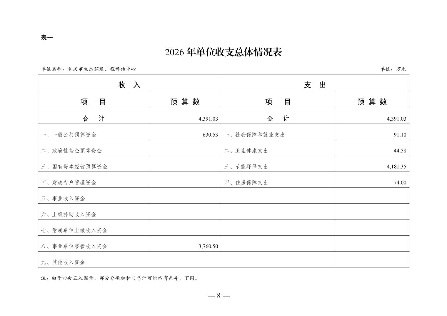 重庆市生态环境工程评估中心2026年单位预算情况说明