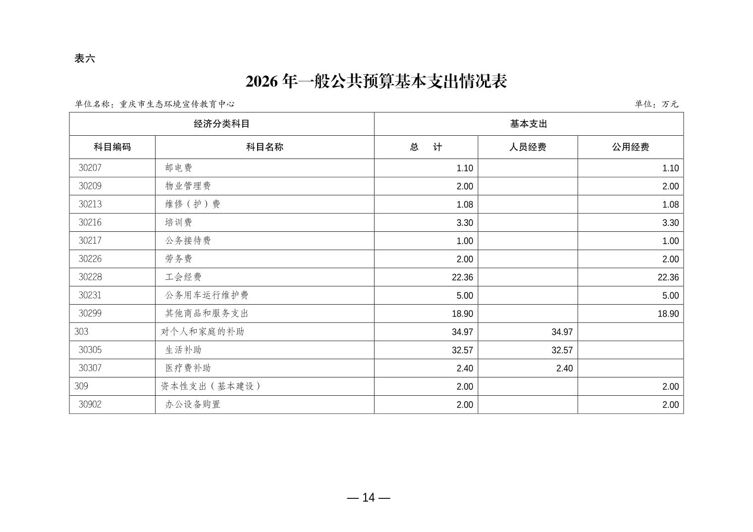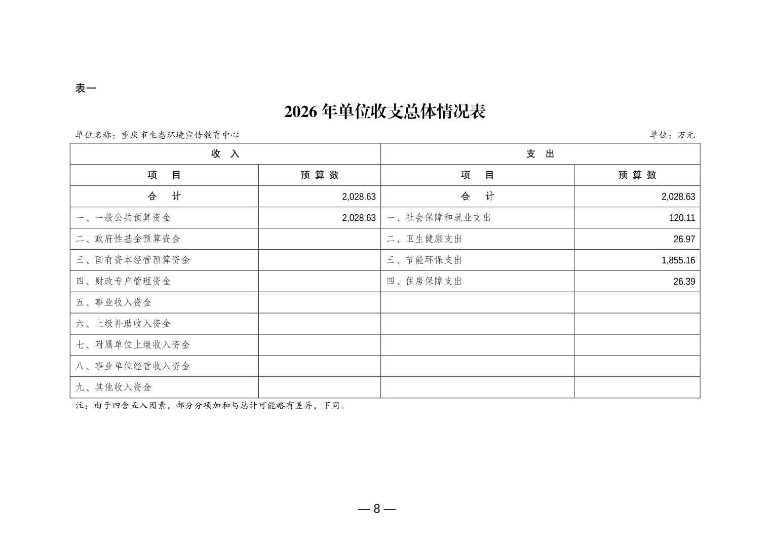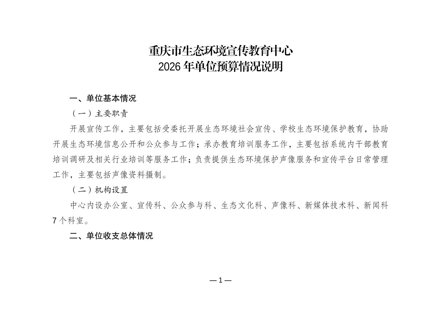重庆市生态环境宣传教育中心2026年单位预算情况说明