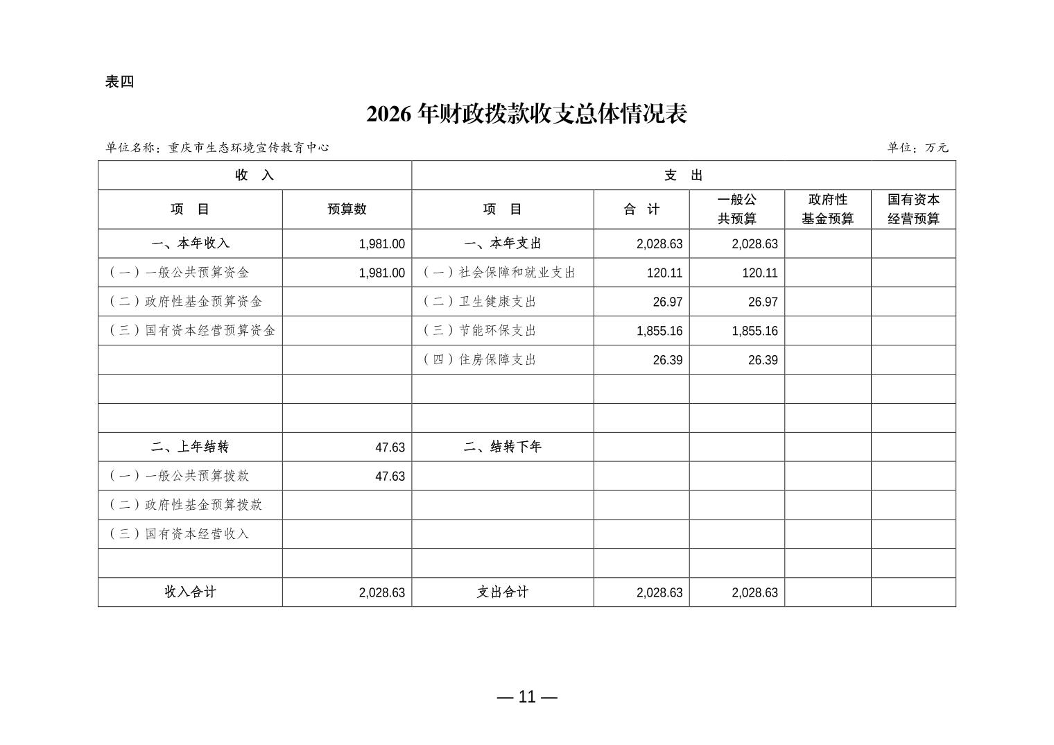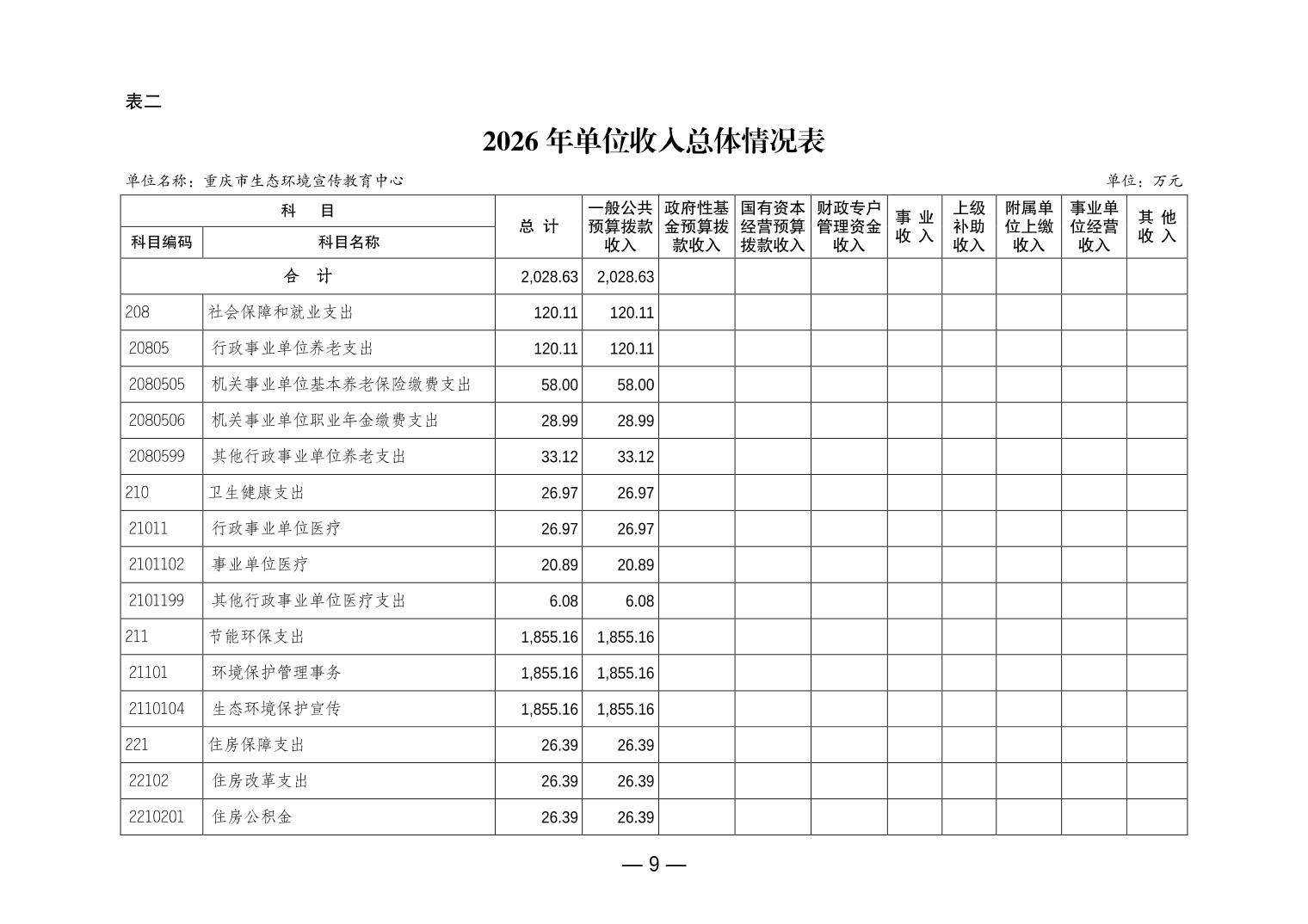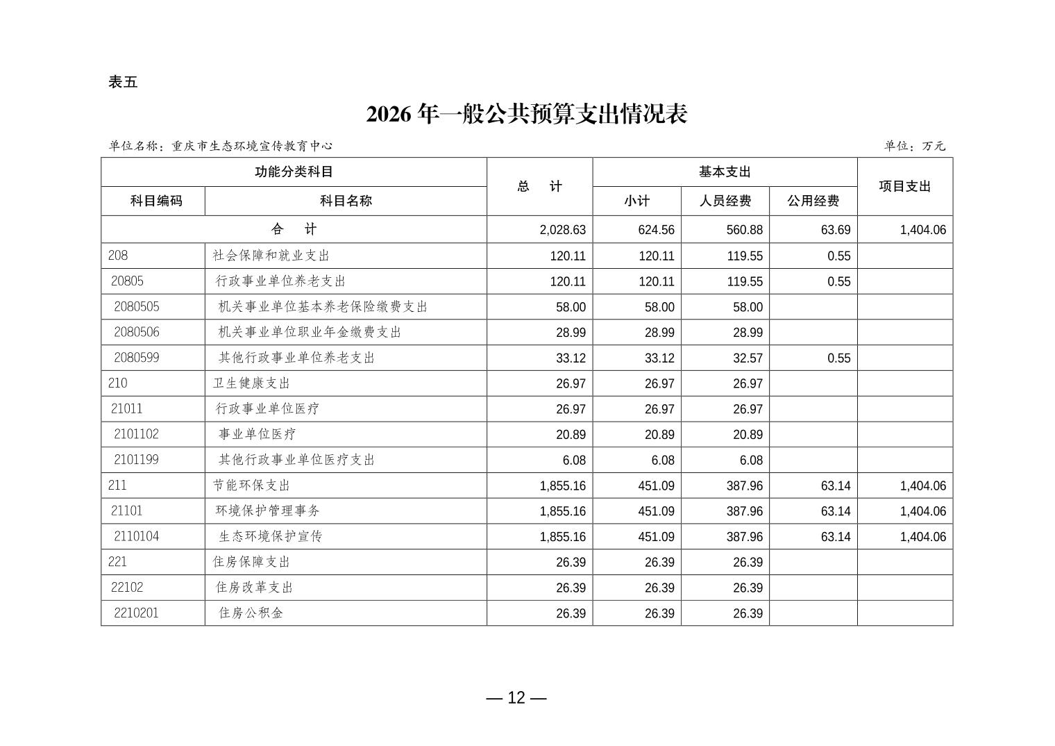 重庆市生态环境宣传教育中心2026年单位预算情况说明