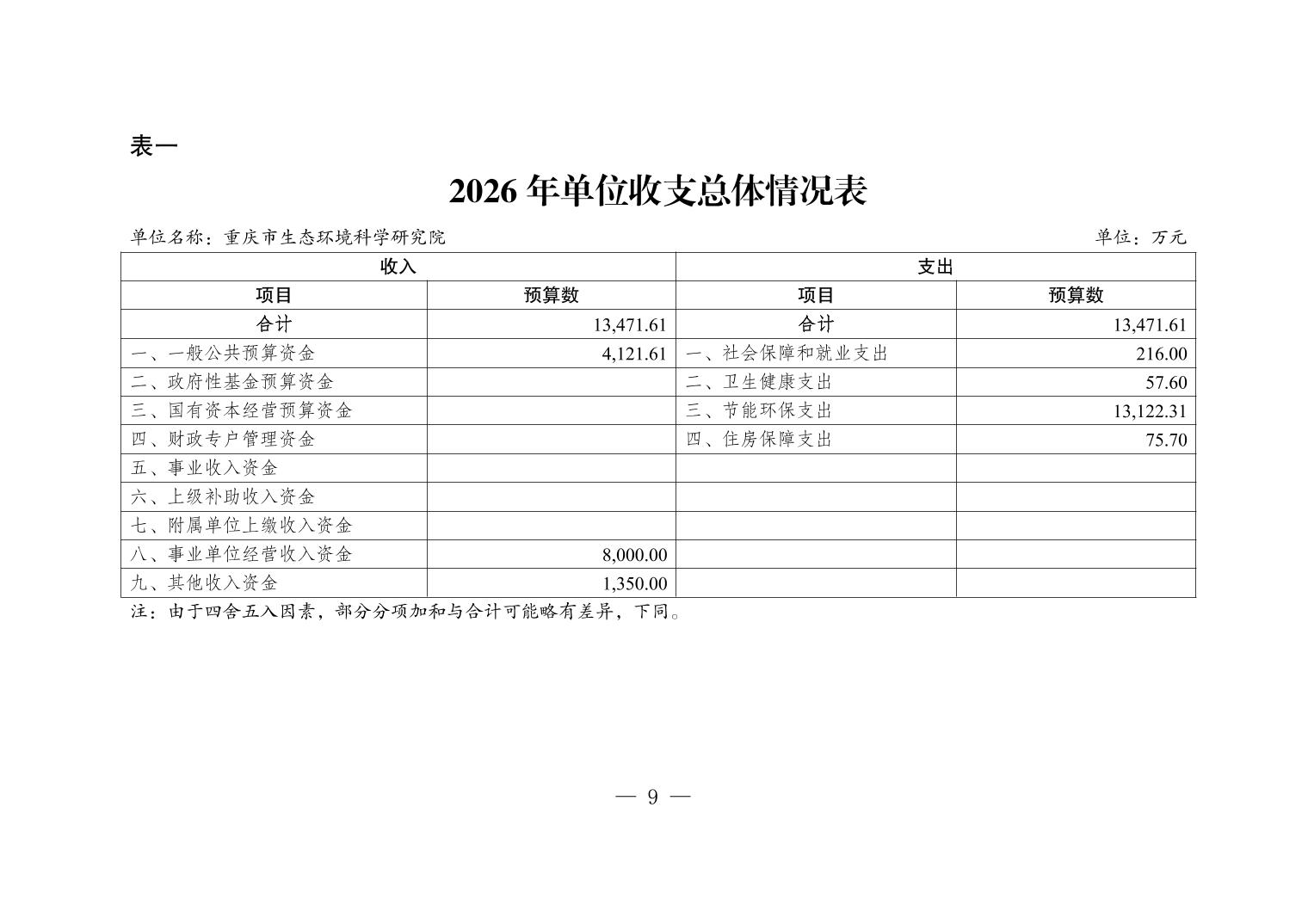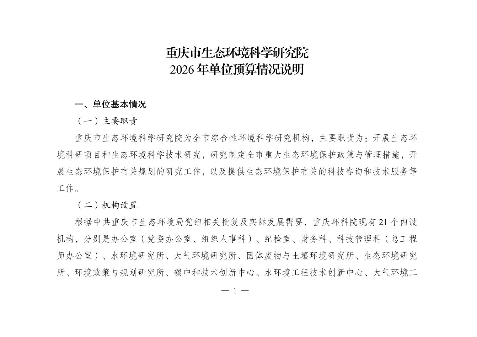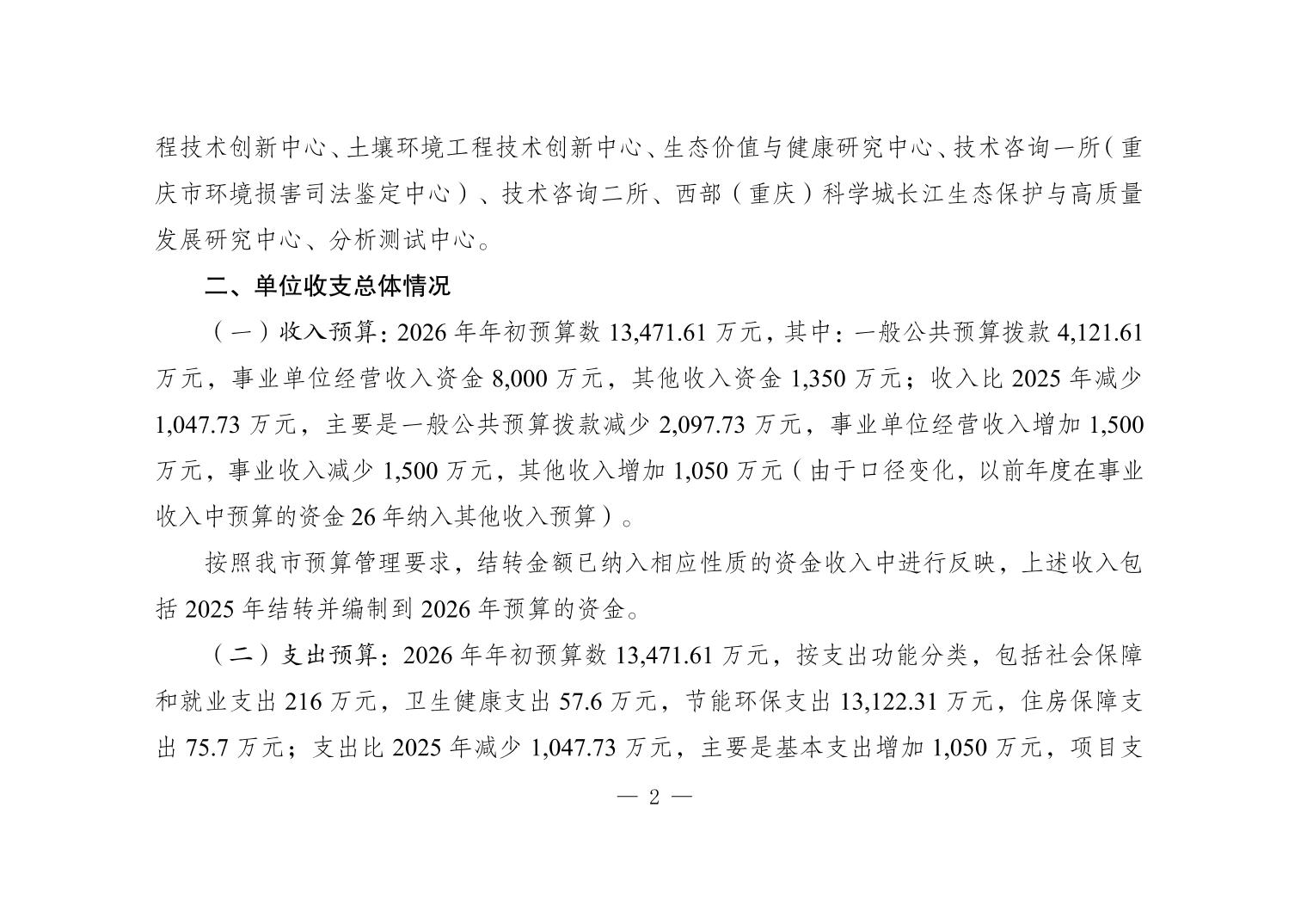 重庆市生态环境科学研究院2026年单位预算情况说明