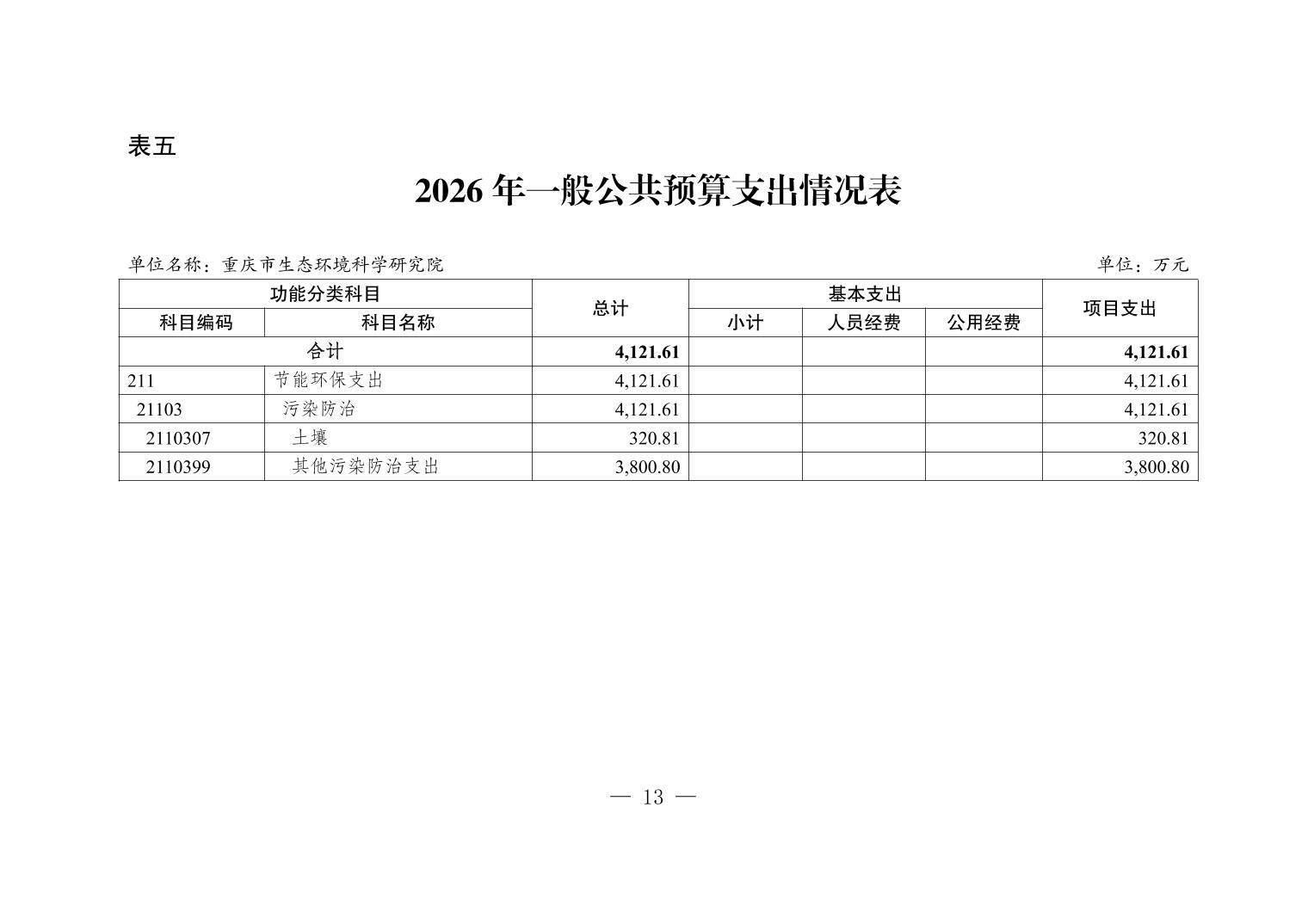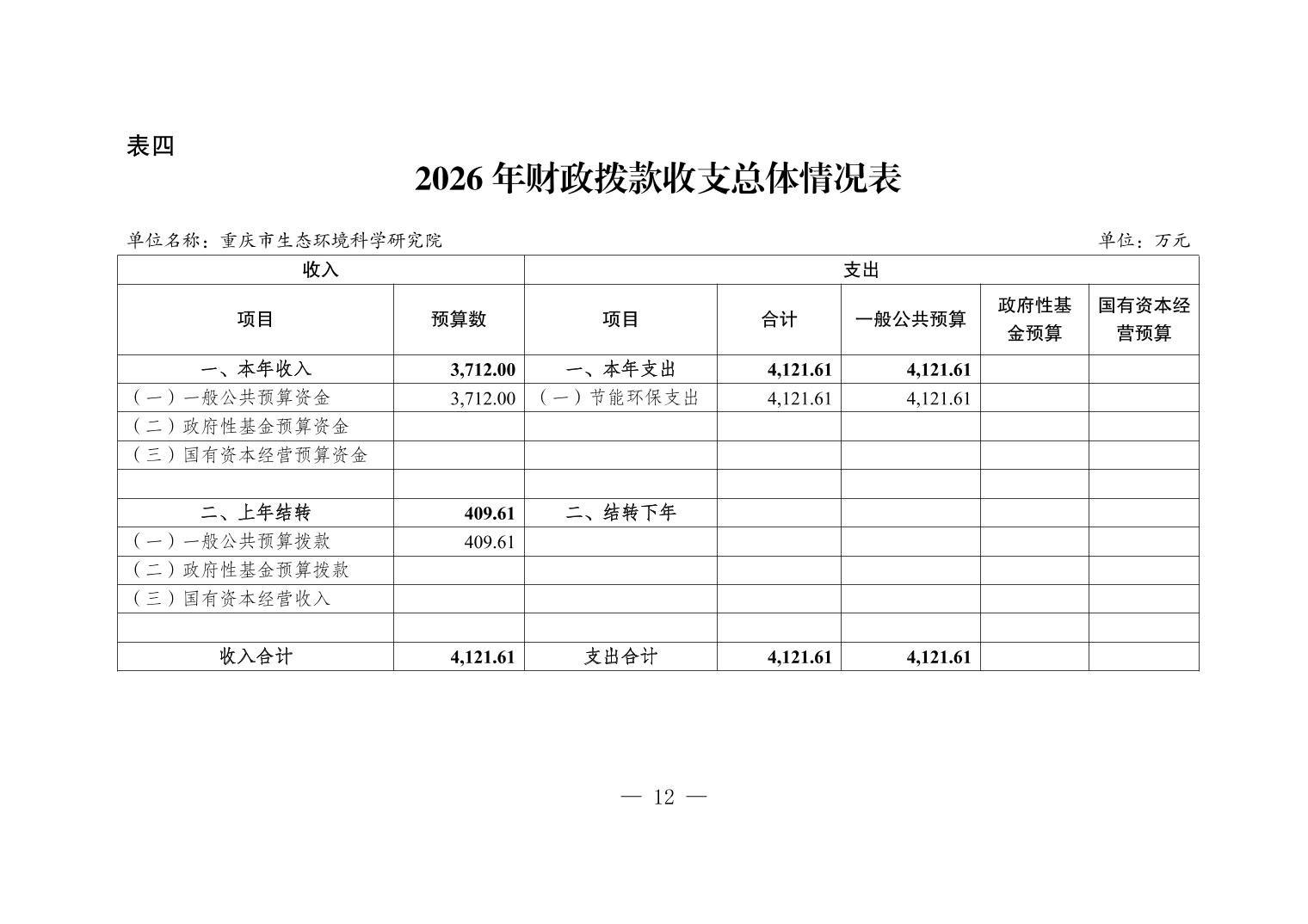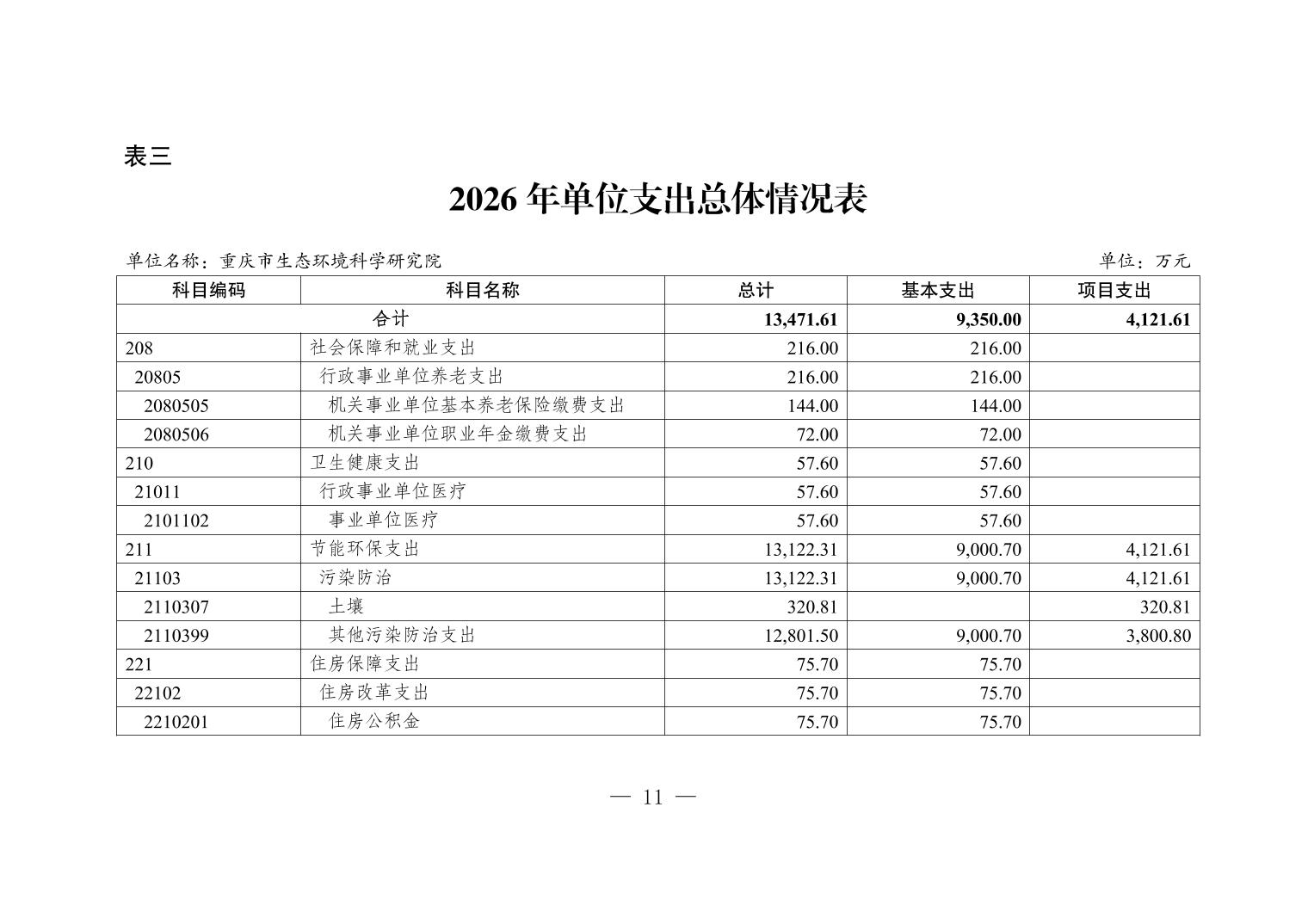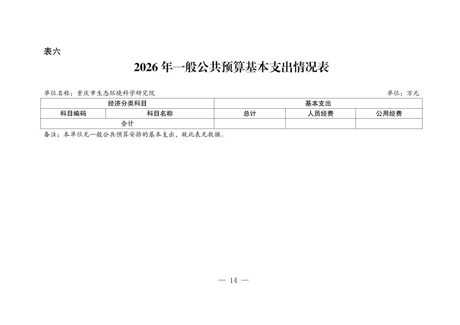 重庆市生态环境科学研究院2026年单位预算情况说明