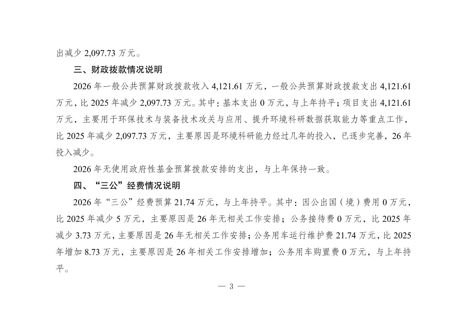 [ 主题分类 ] 环境监测、保护与治理 [ 体裁分类 ] 财政预算、决算