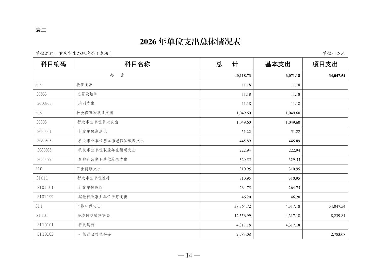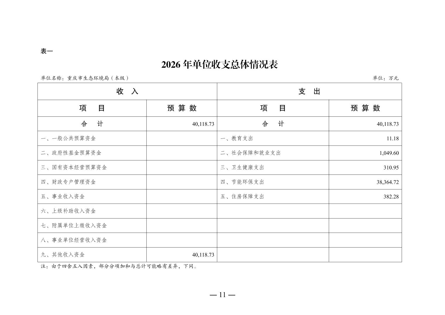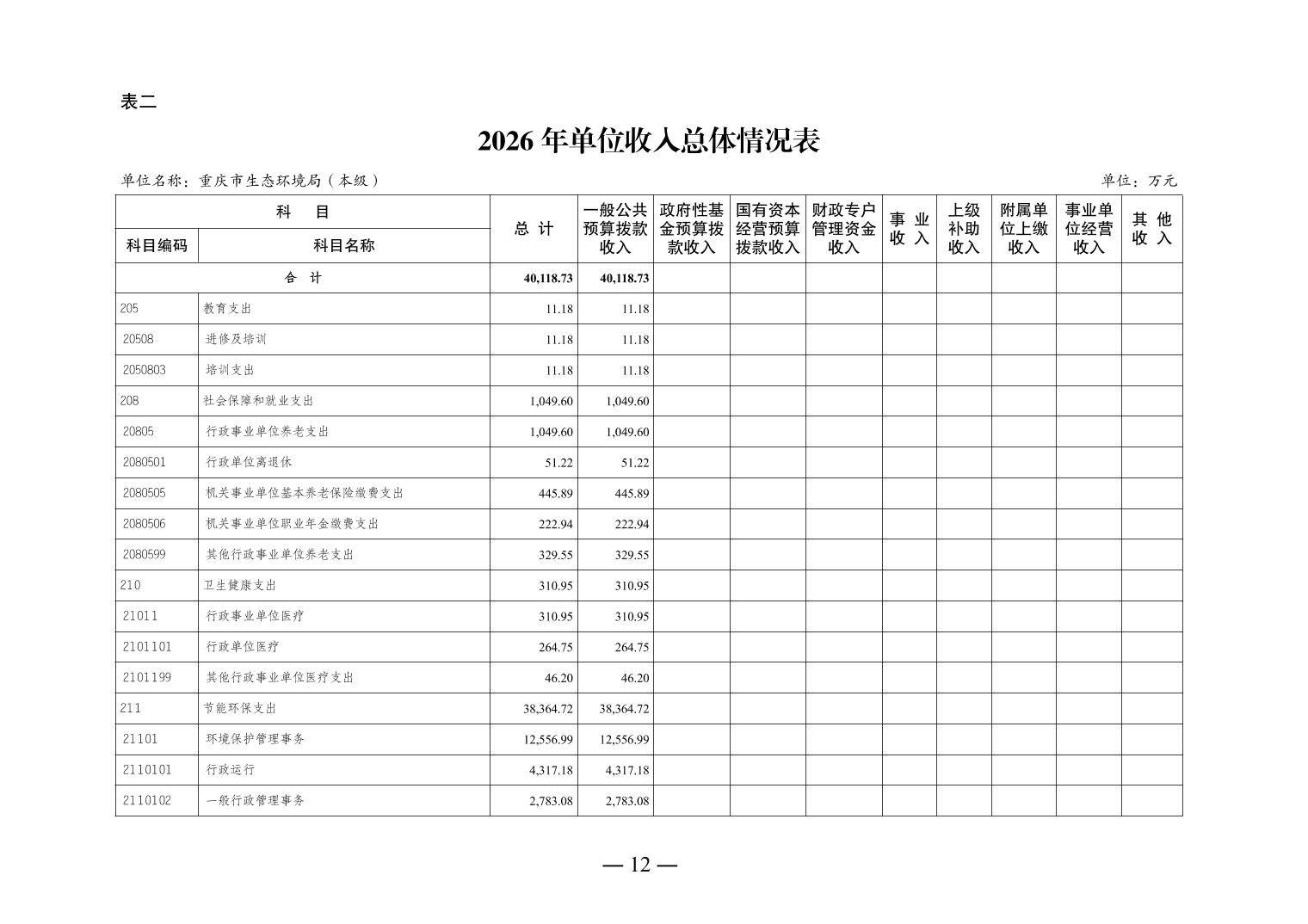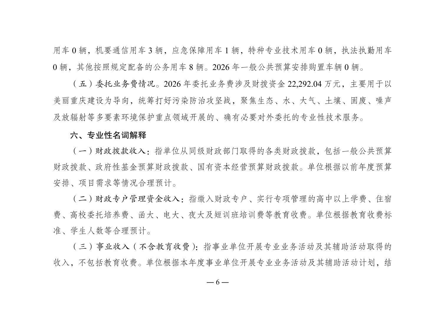 重庆市生态环境局(本级)2026年单位预算情况说明
