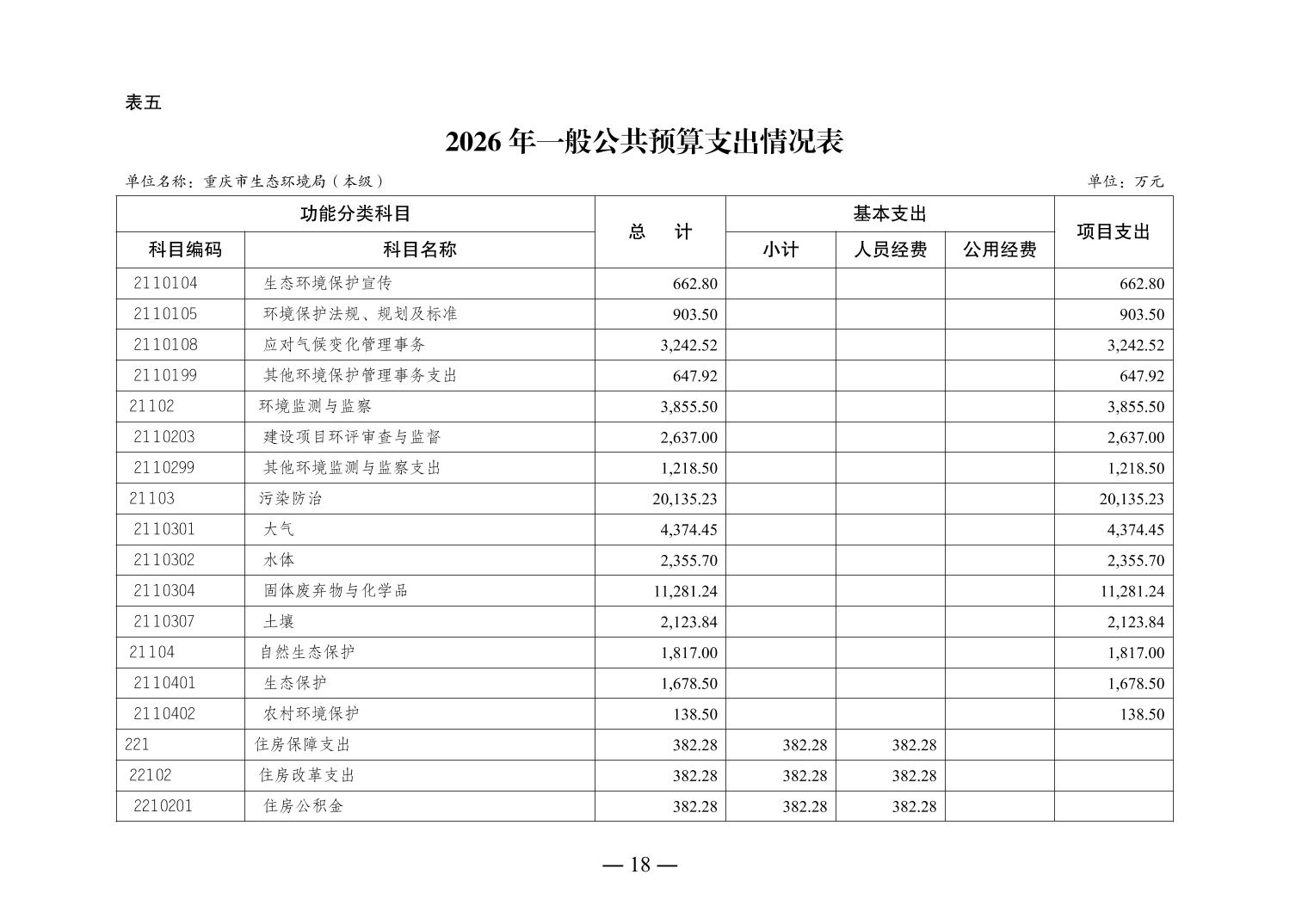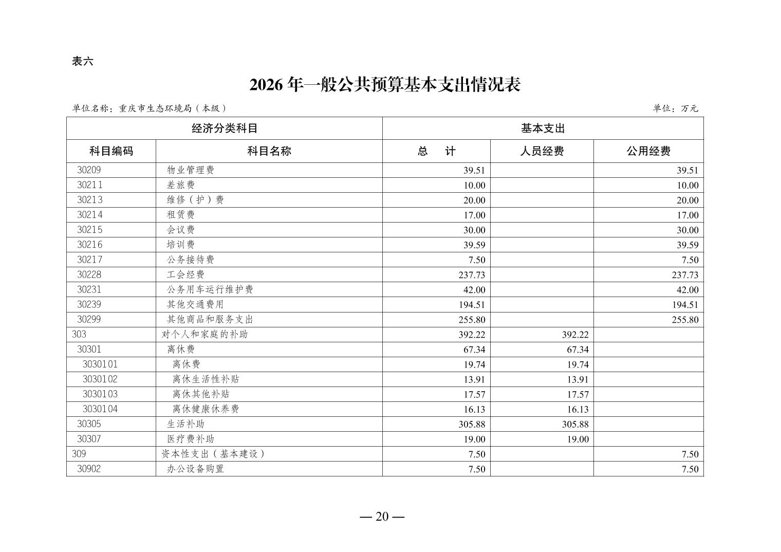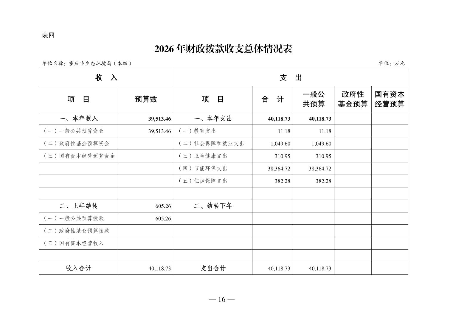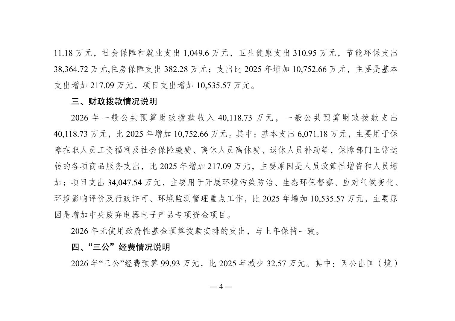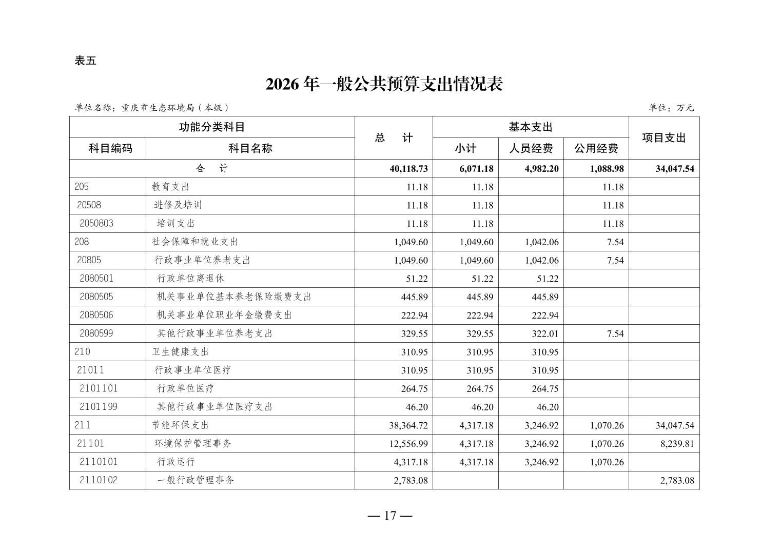 重庆市生态环境局(本级)2026年单位预算情况说明