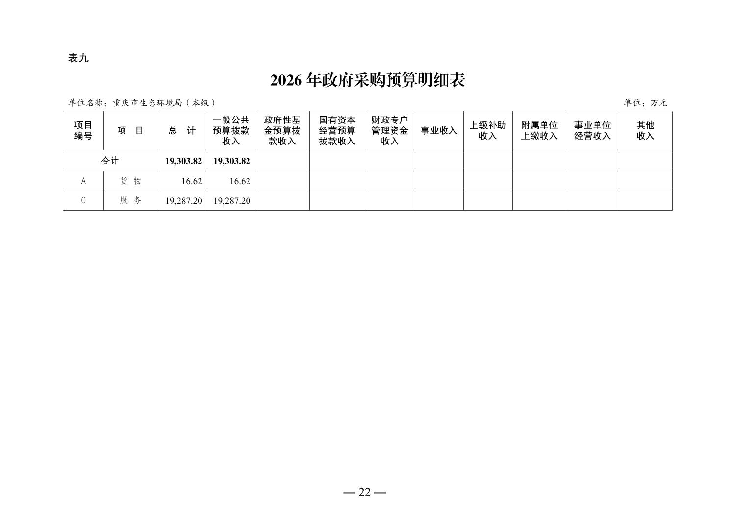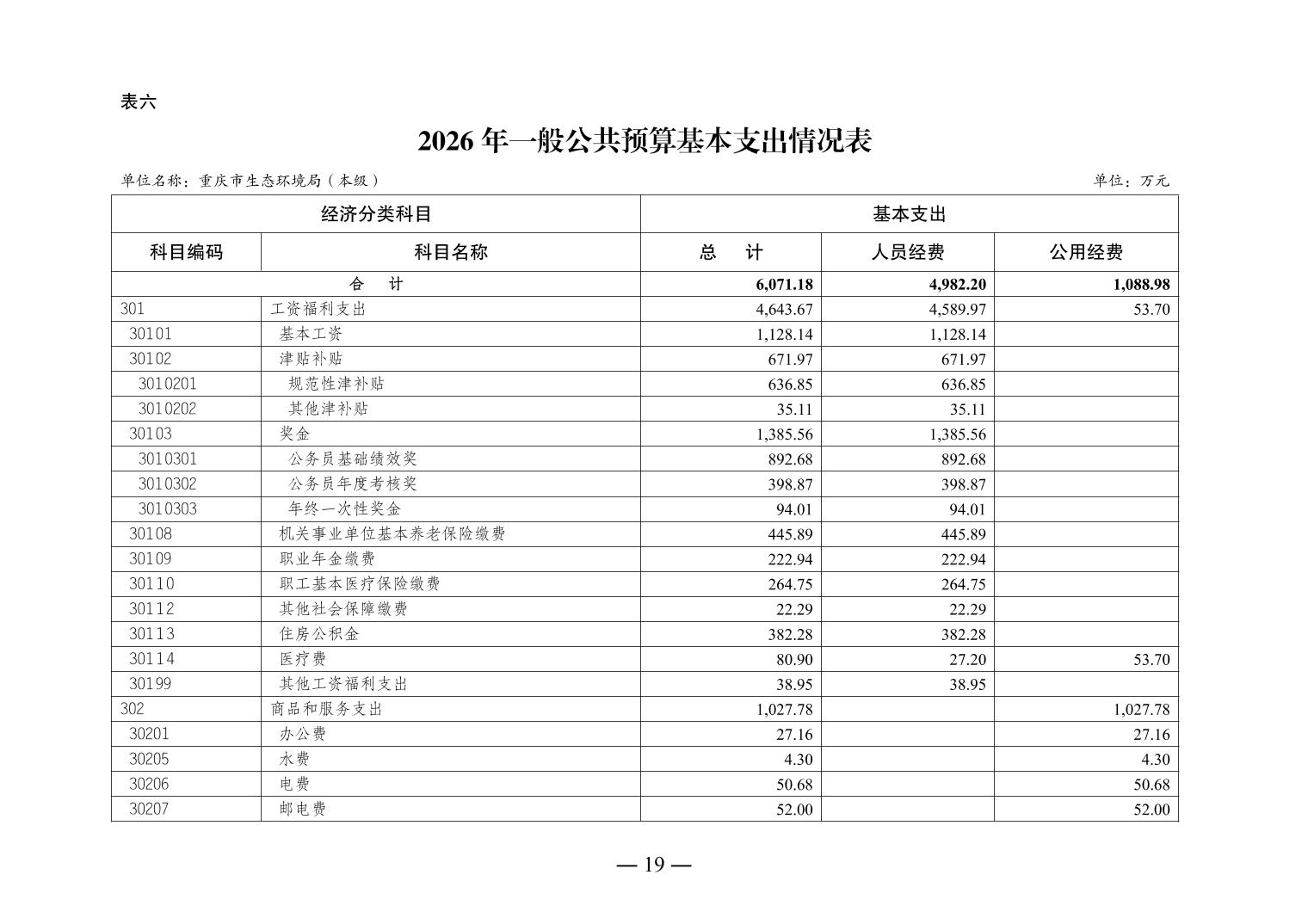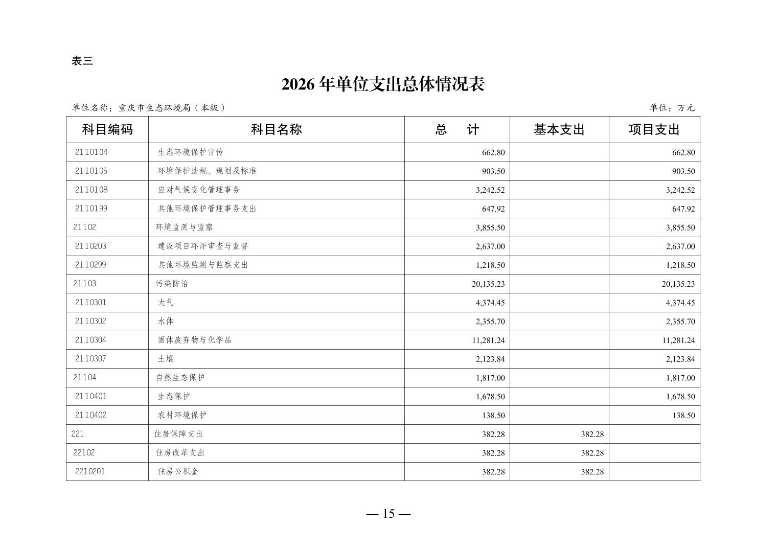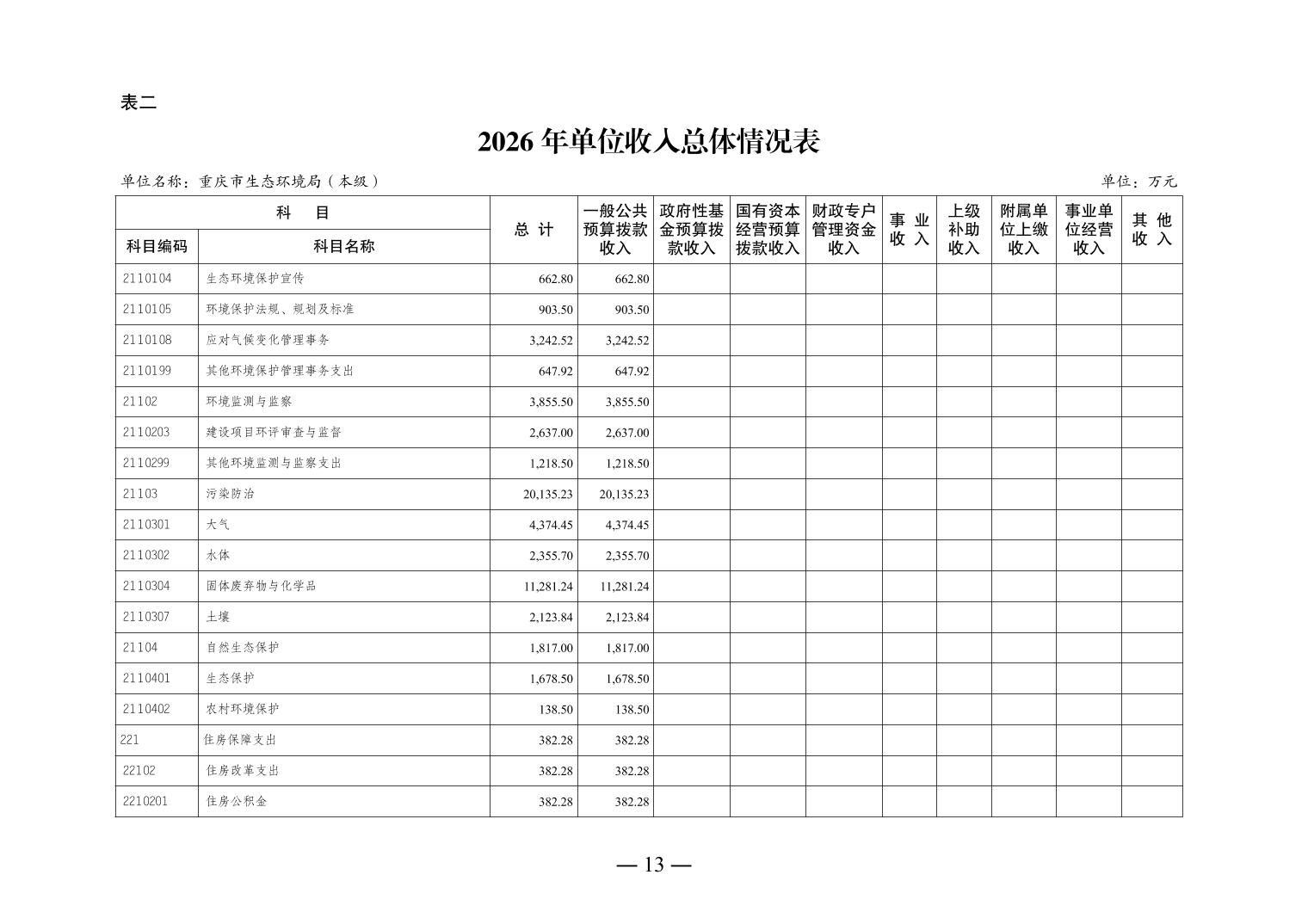 重庆市生态环境局(本级)2026年单位预算情况说明