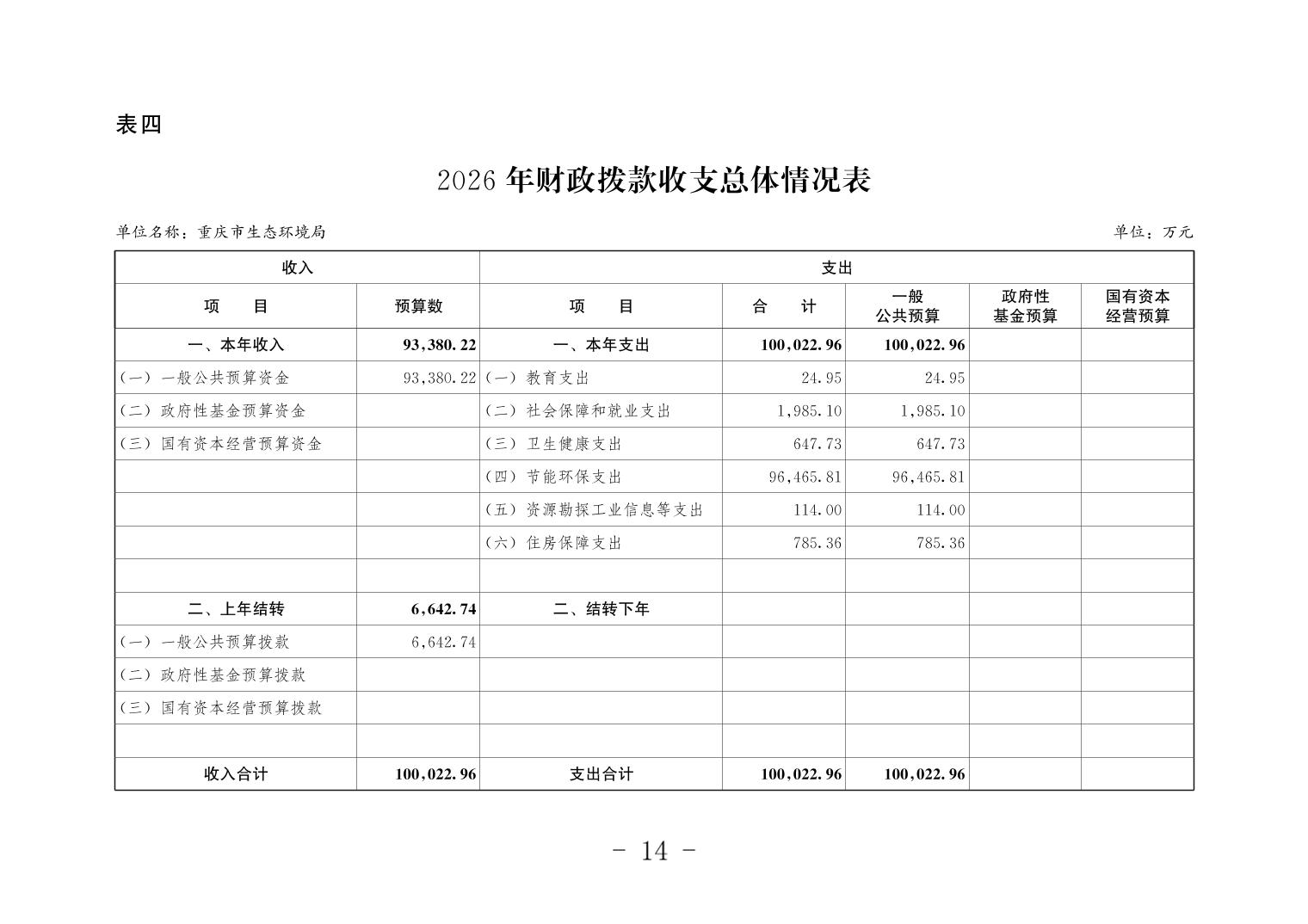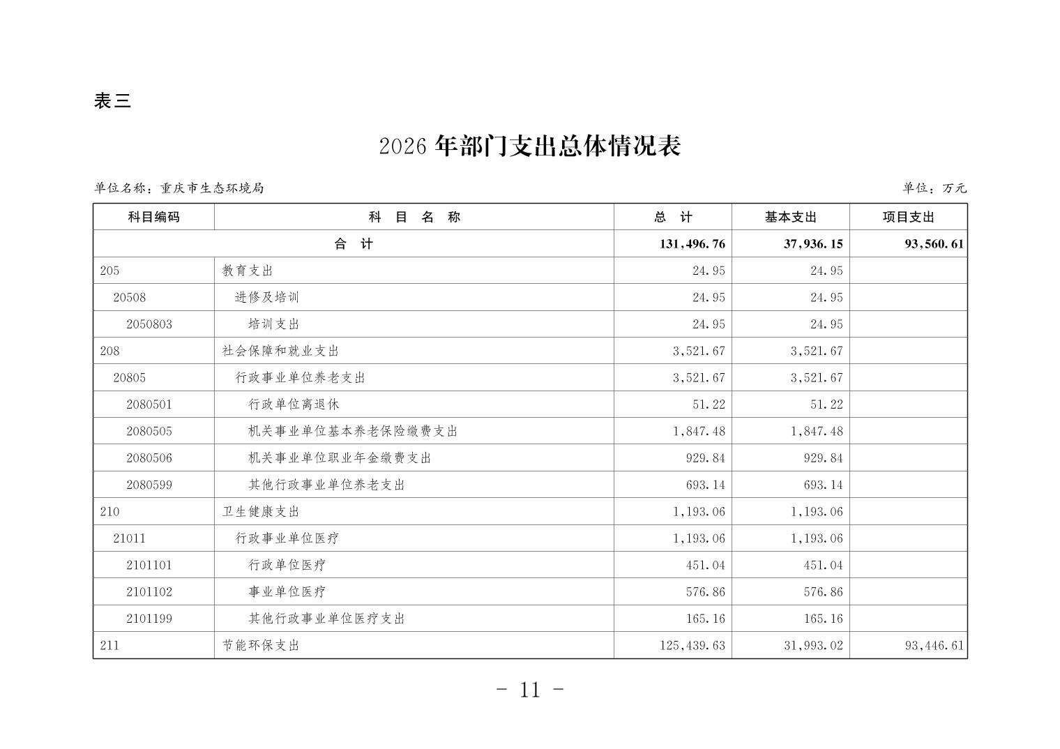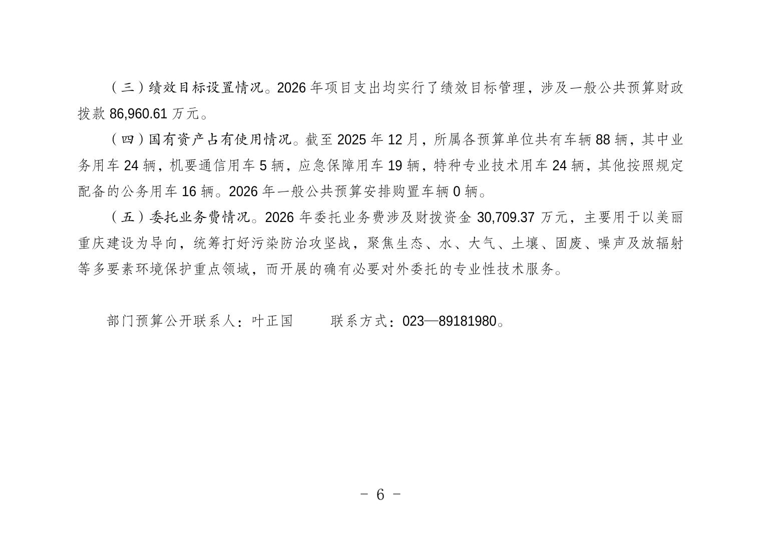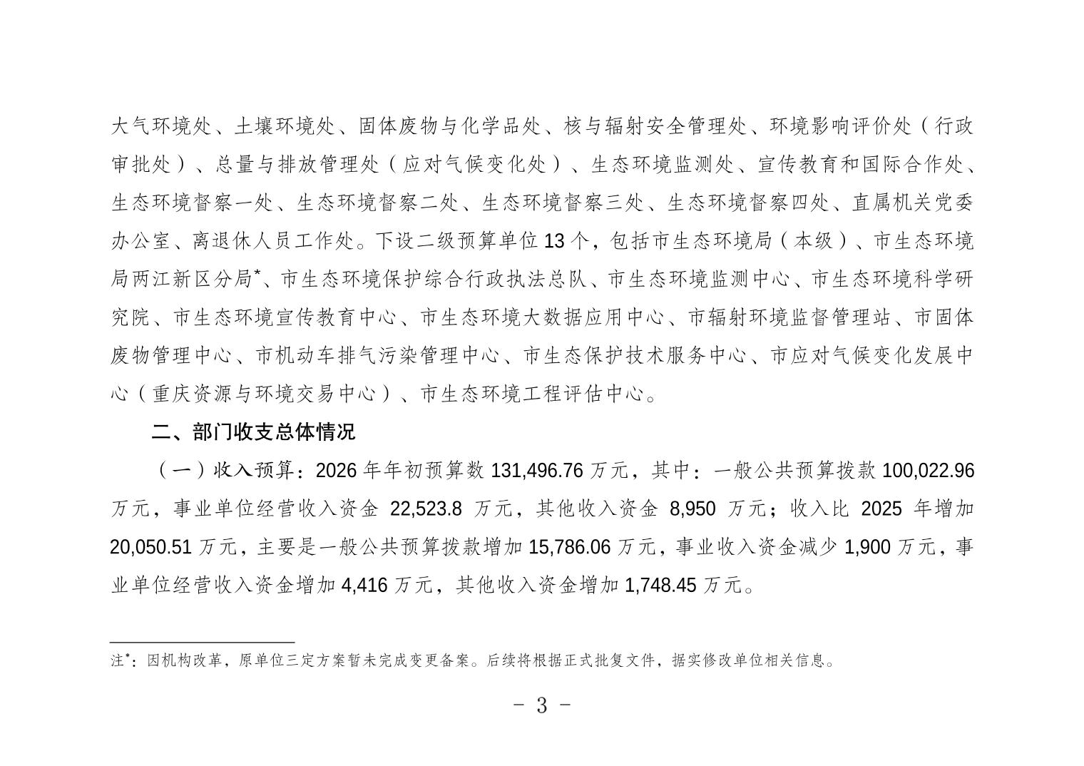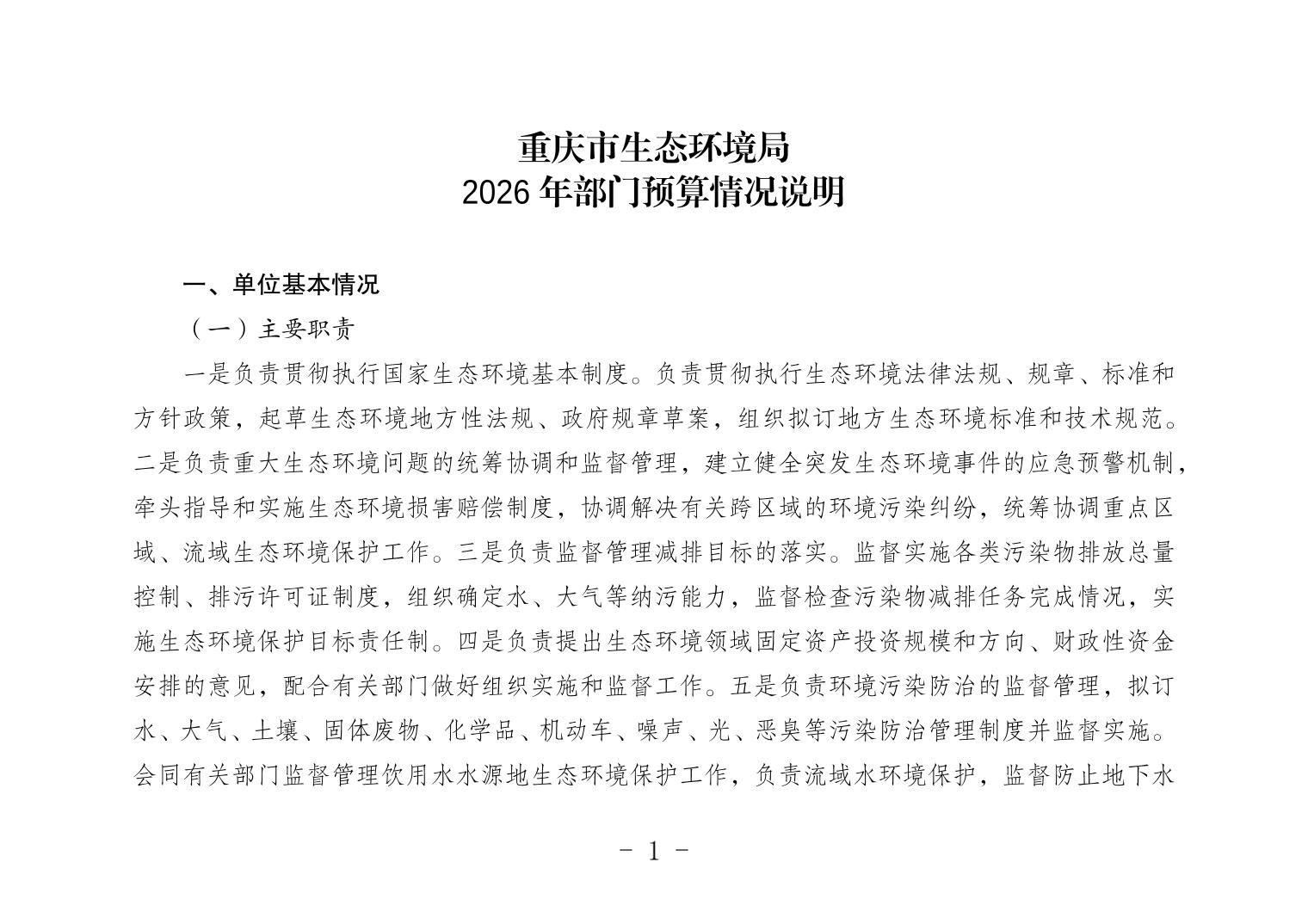 重庆市生态环境局2026年单位预算情况说明
