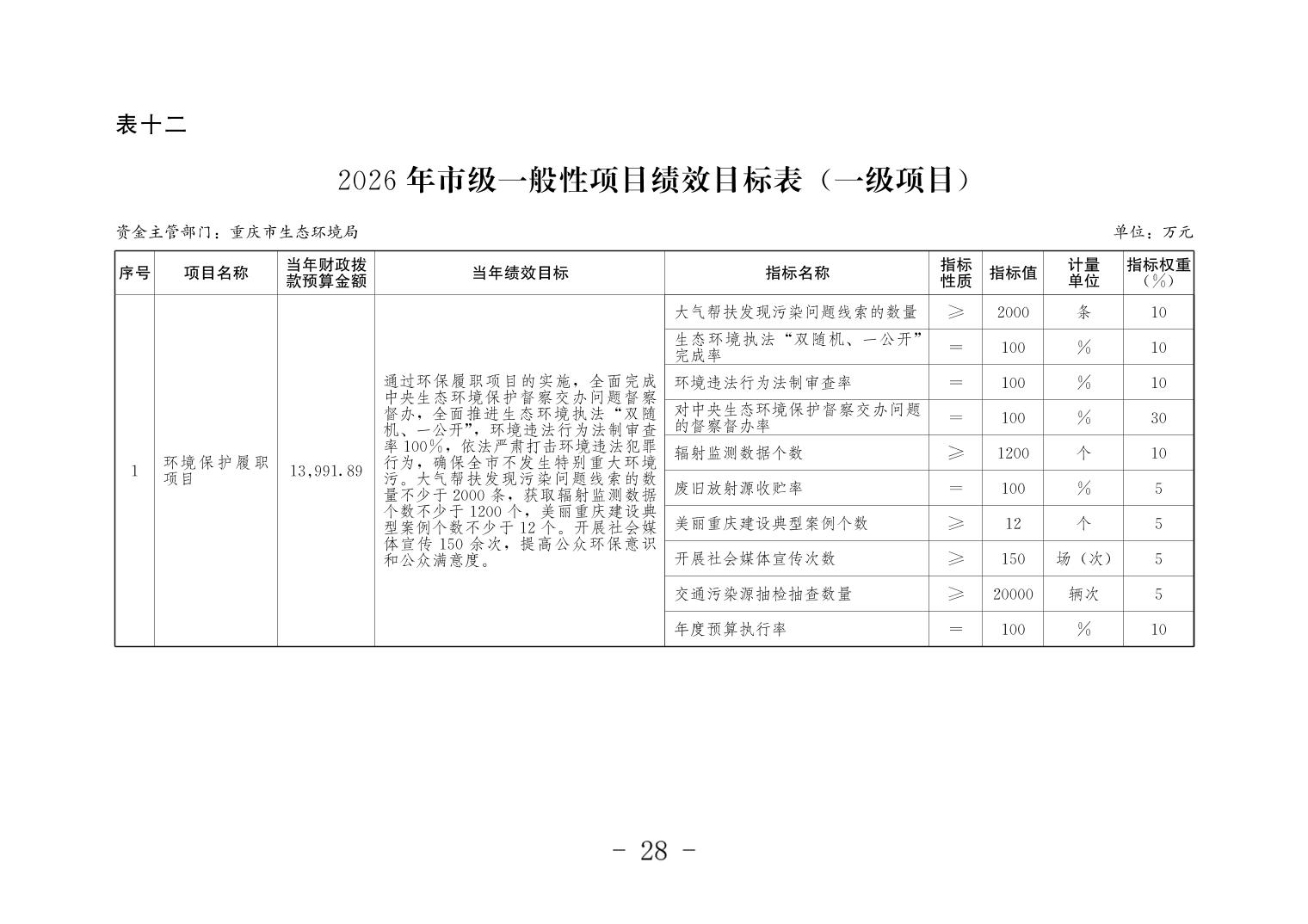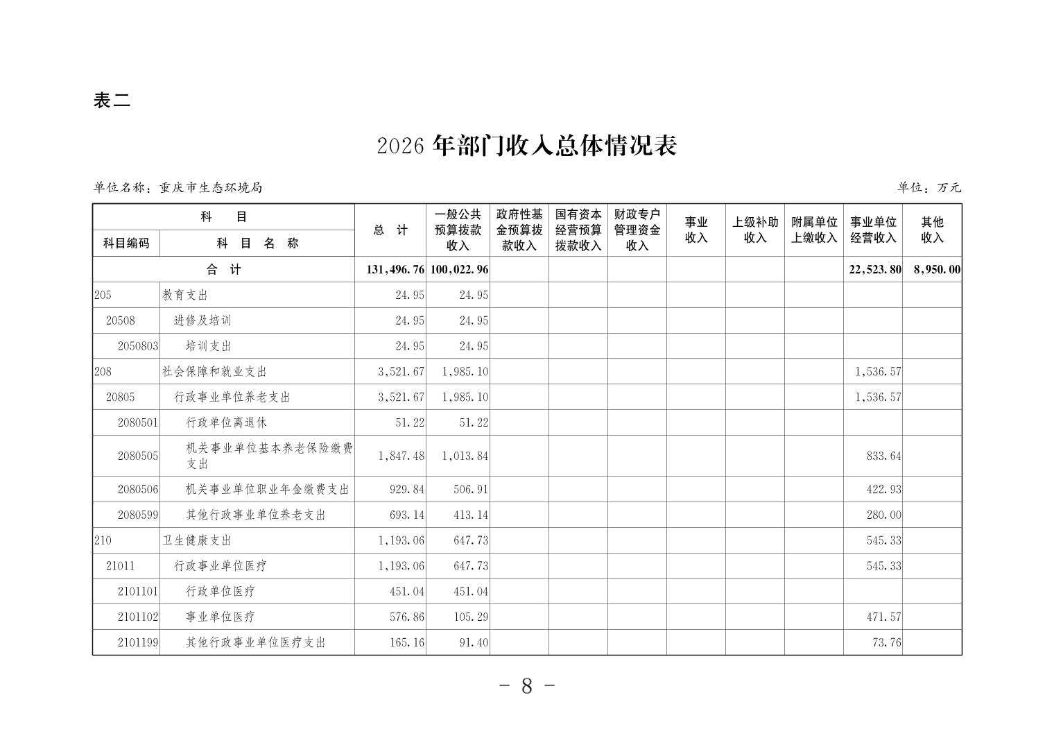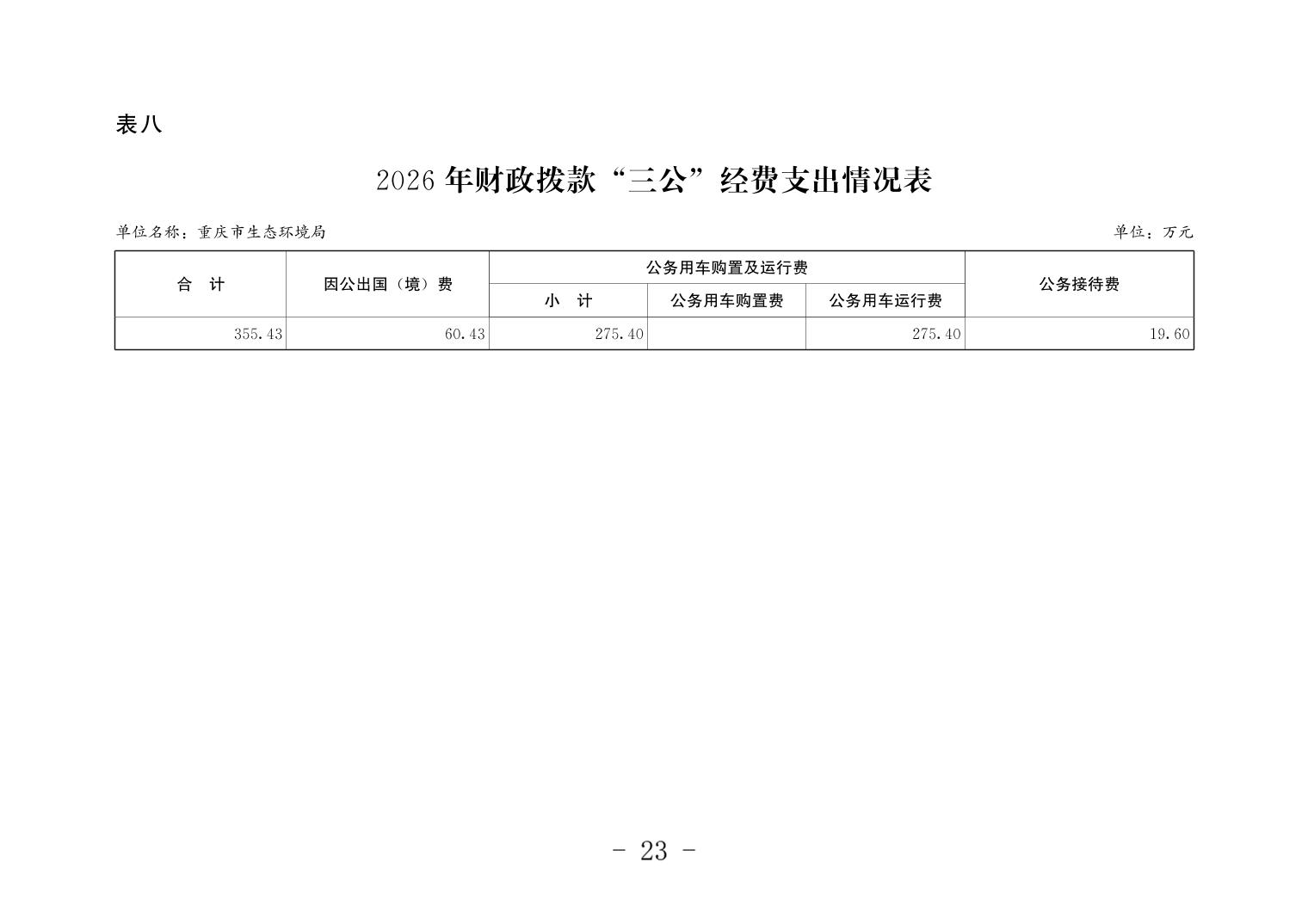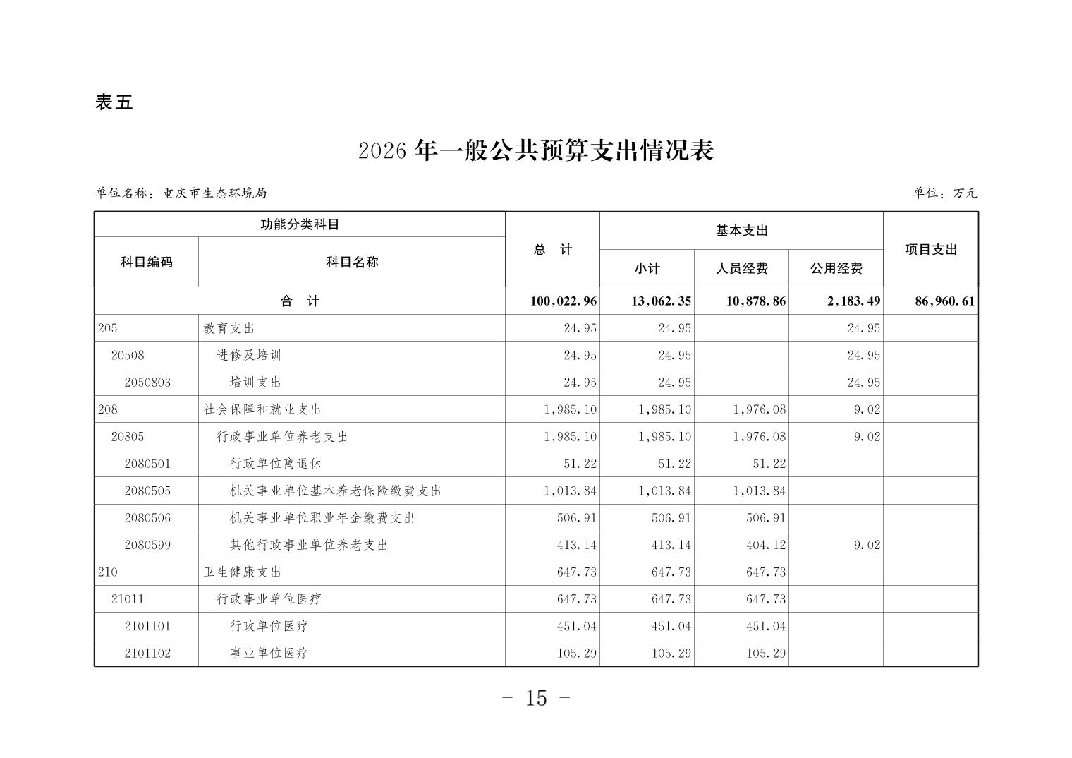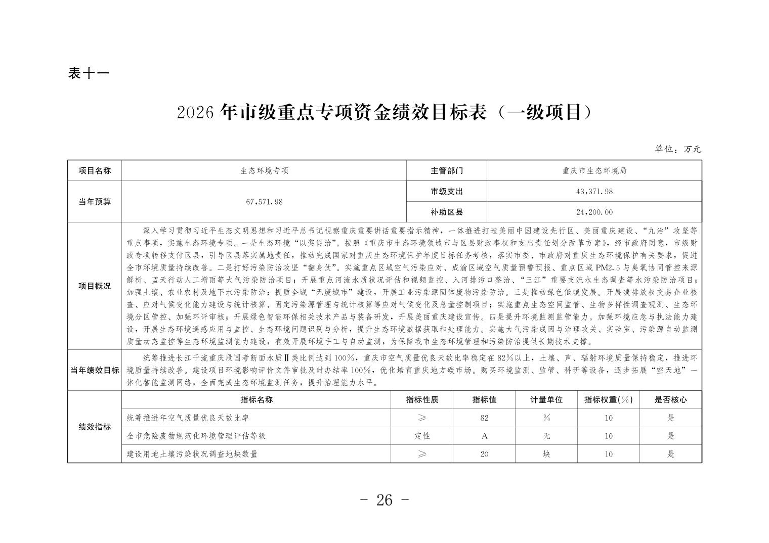 重庆市生态环境局2026年单位预算情况说明