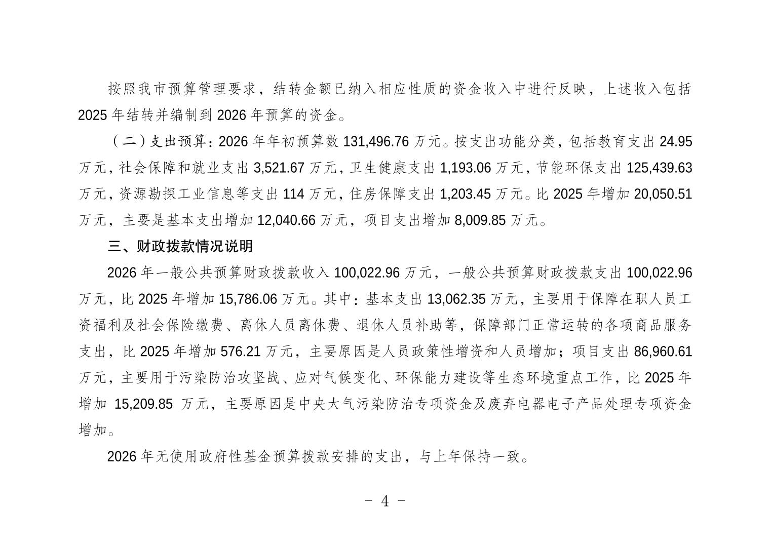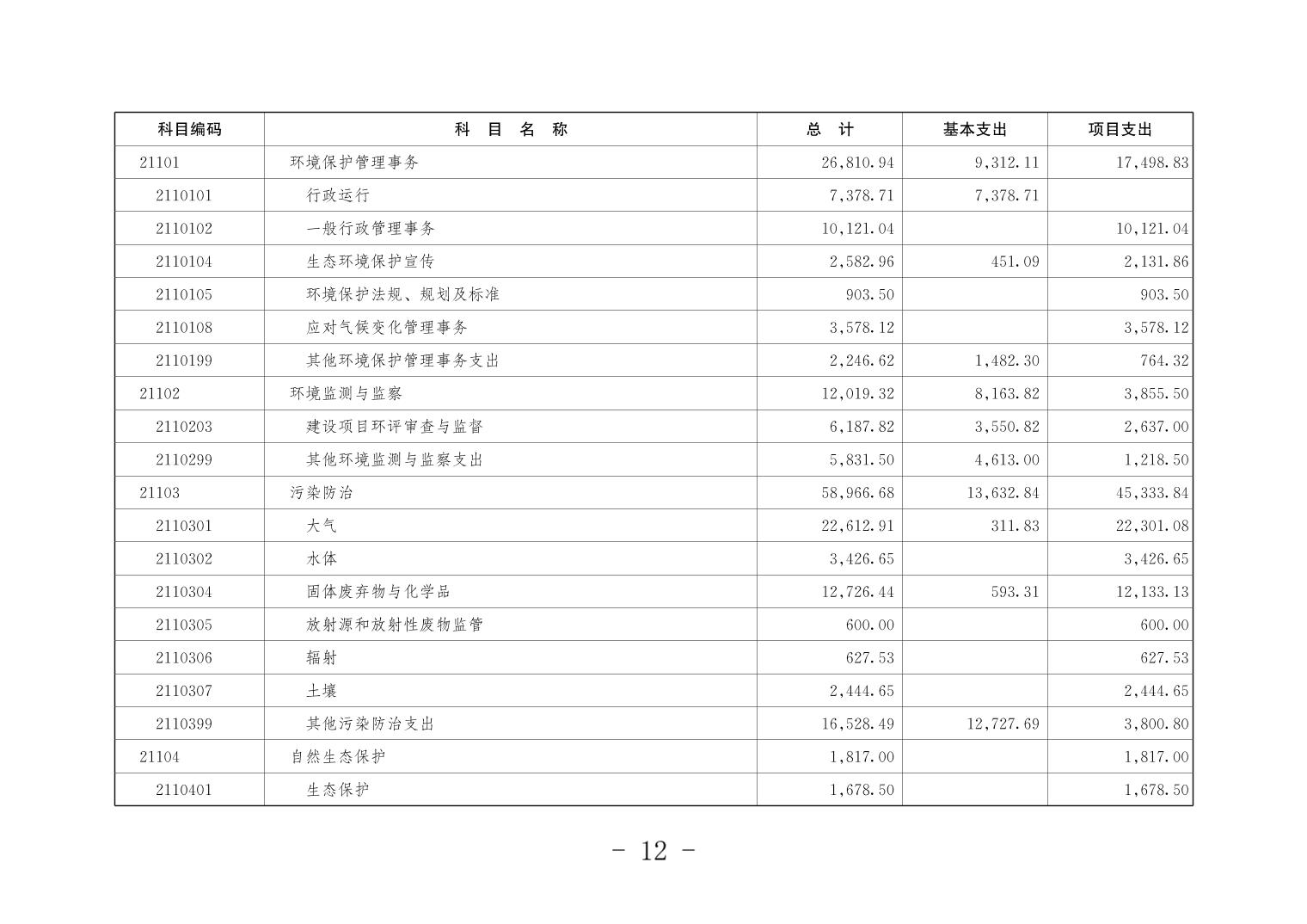 [ 主题分类 ] 环境监测、保护与治理 [ 体裁分类 ] 财政预算、决算