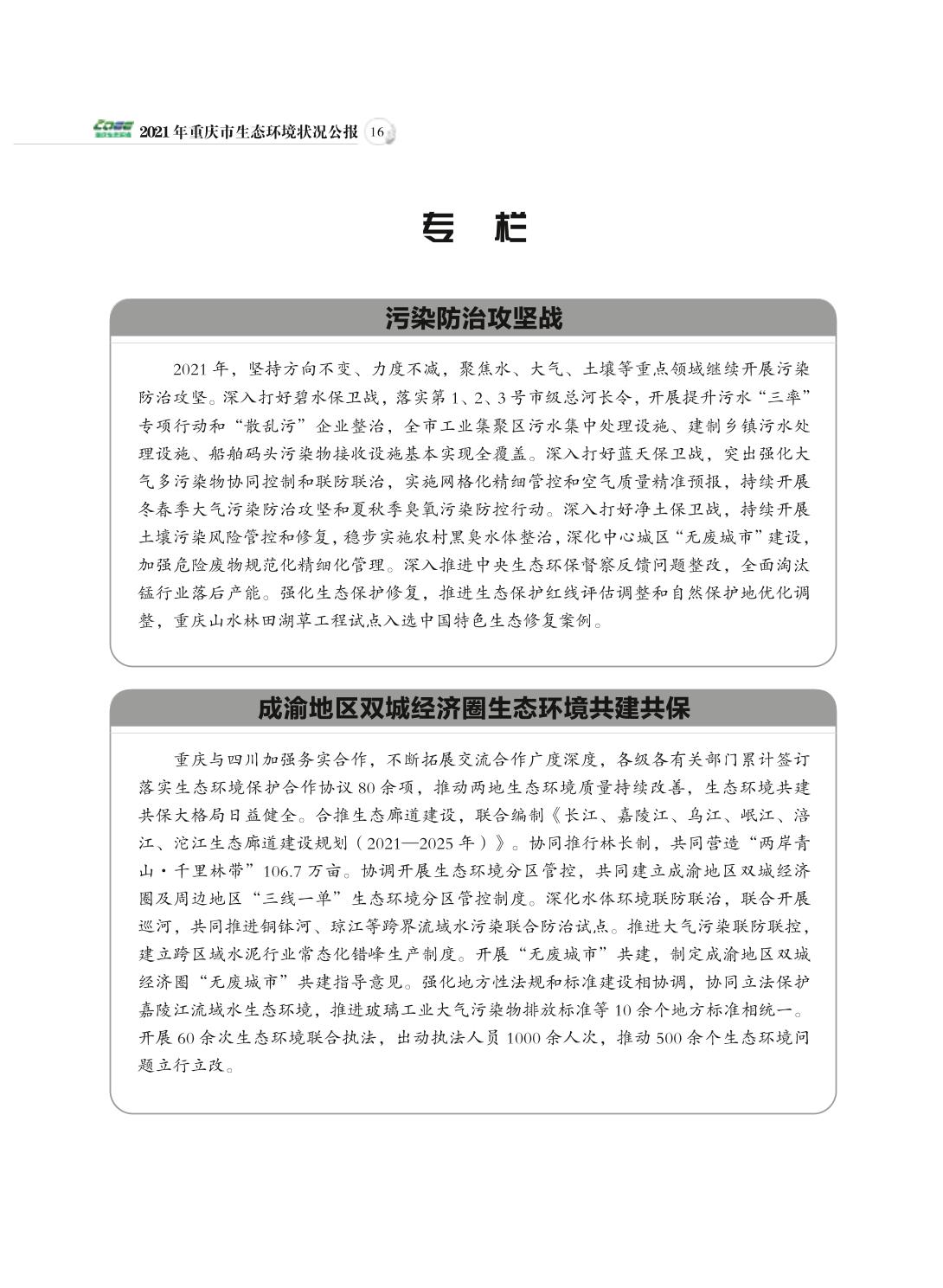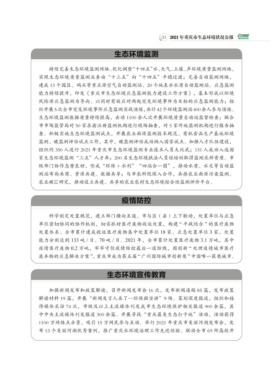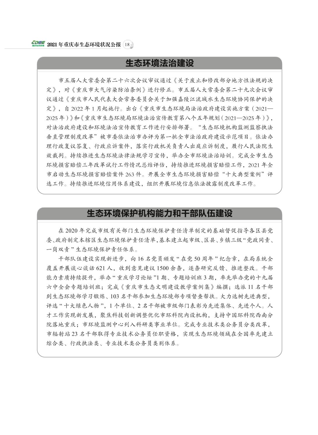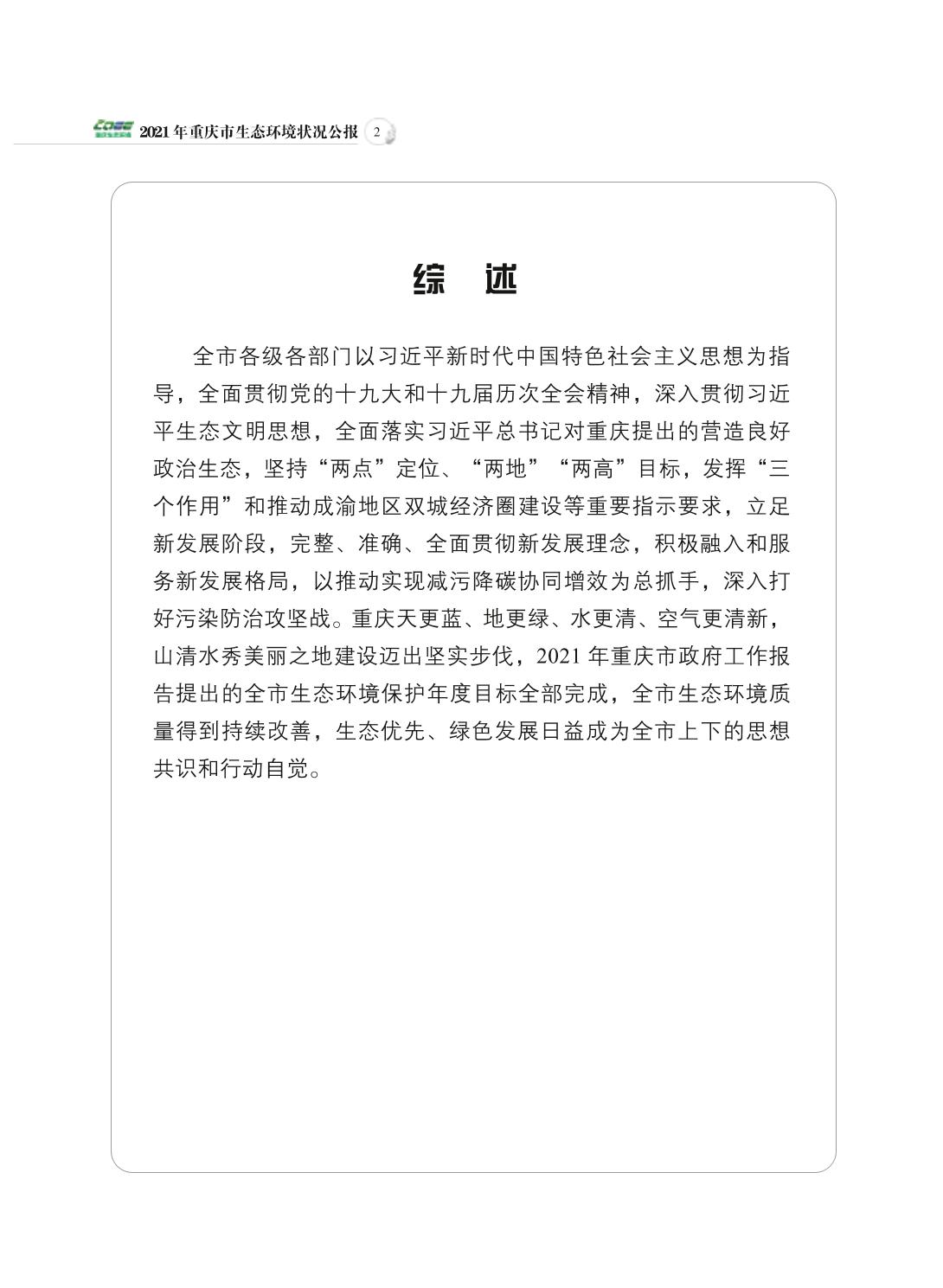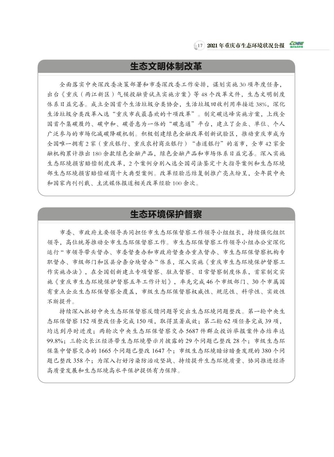 2021年重庆市生态环境状况公报