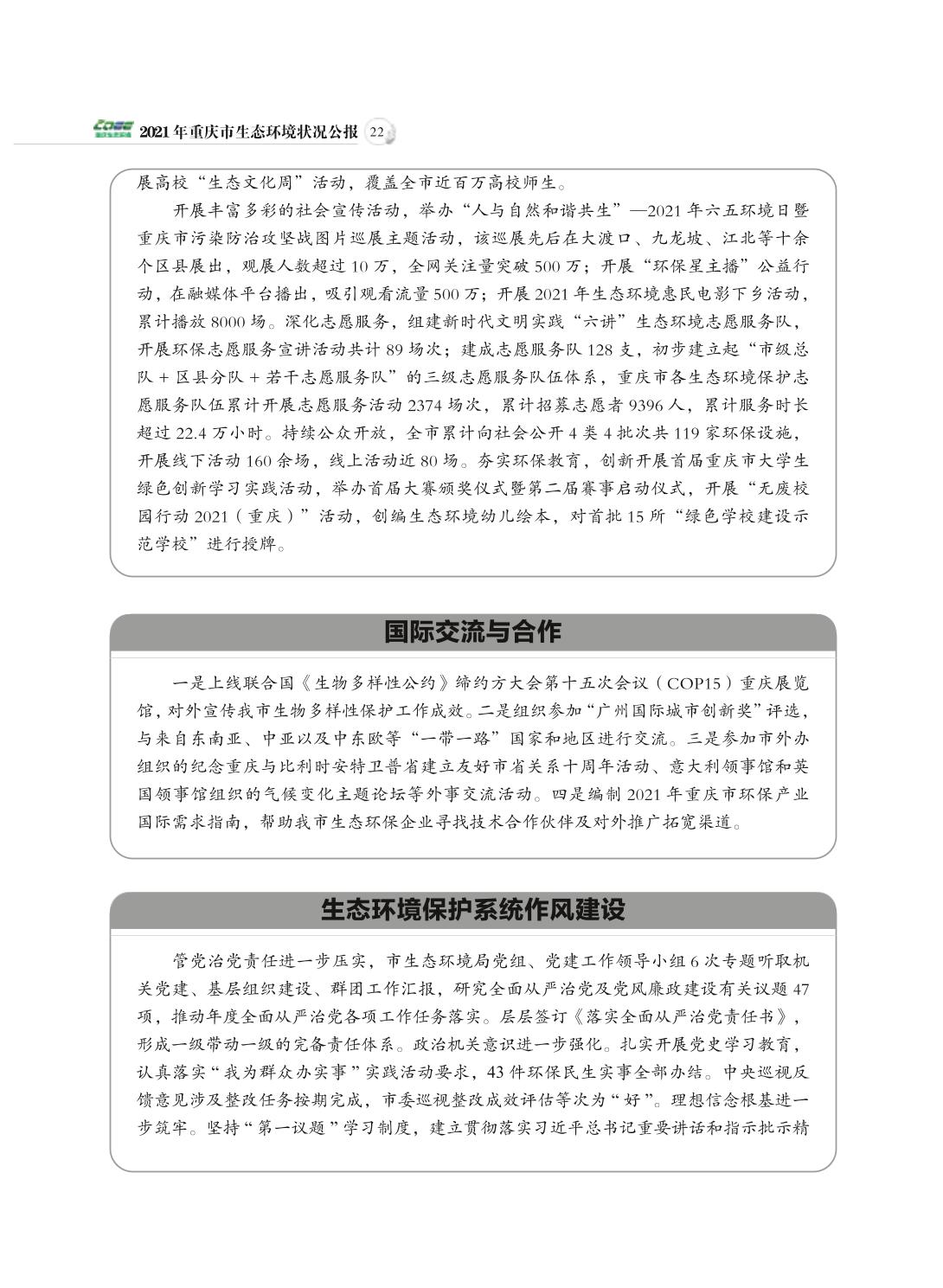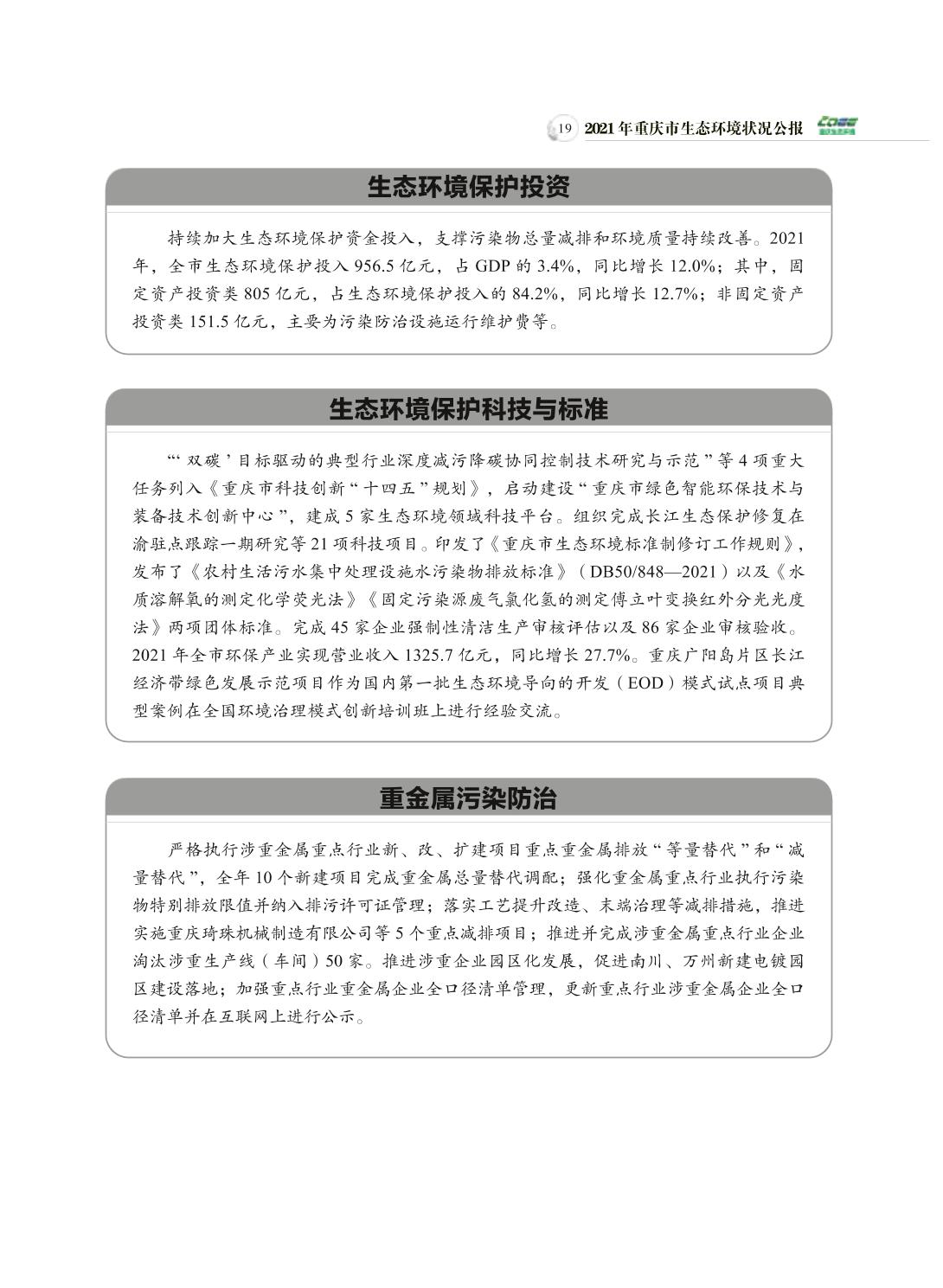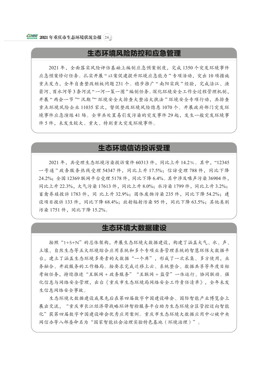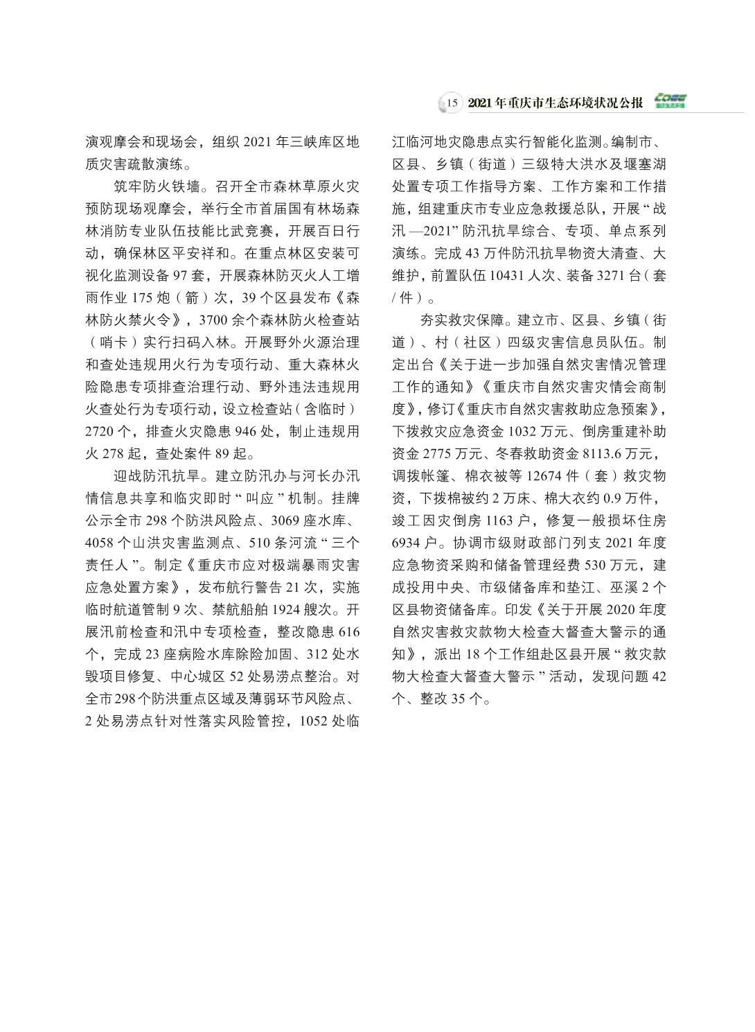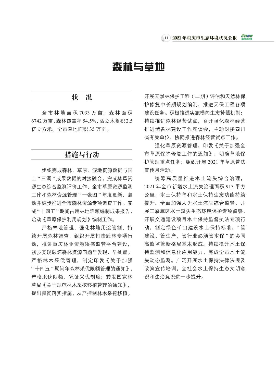2021年重庆市生态环境状况公报