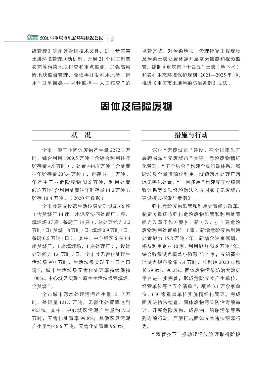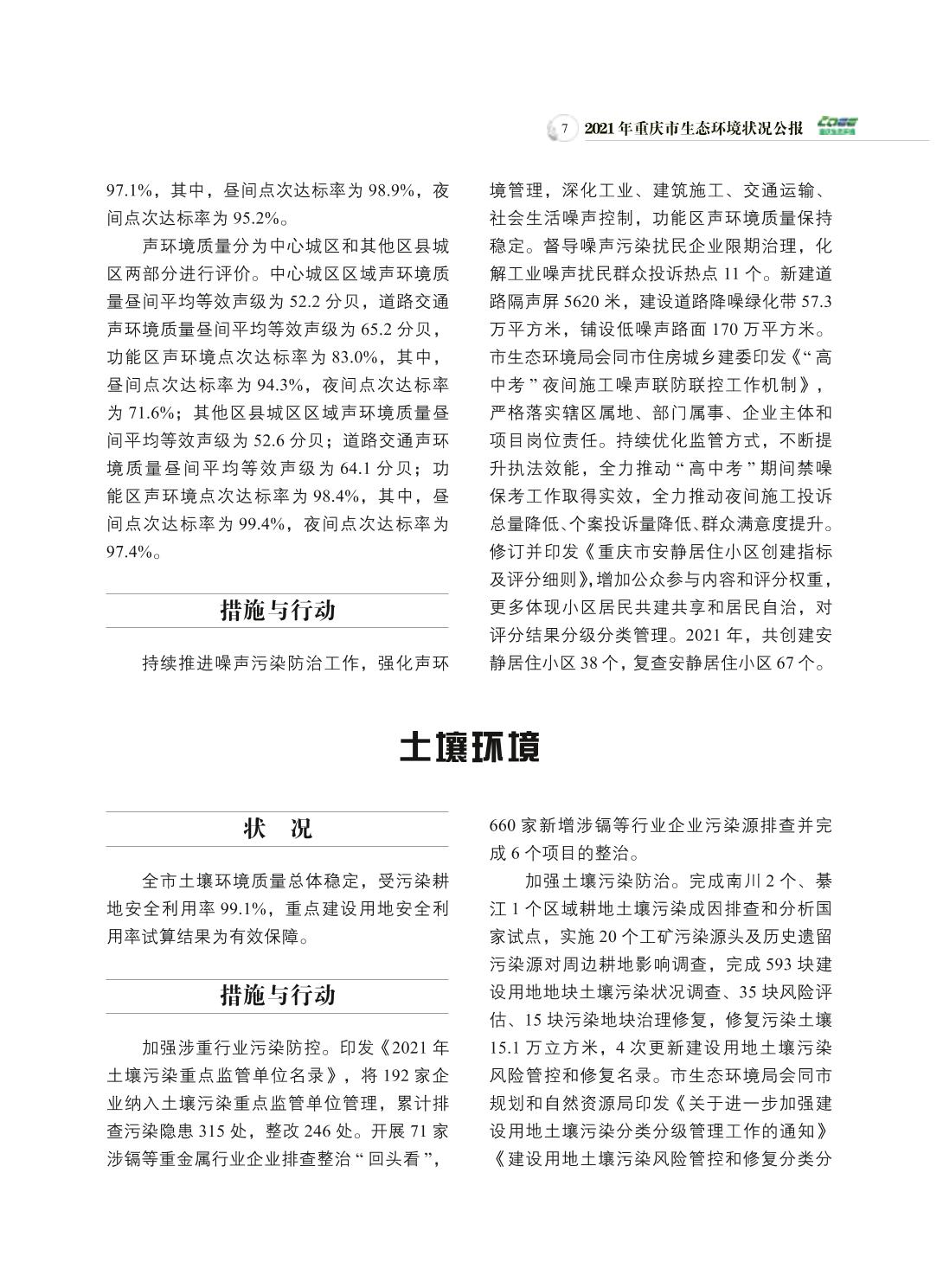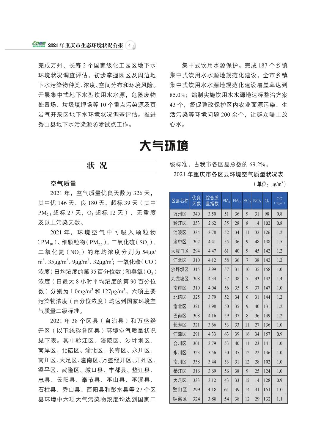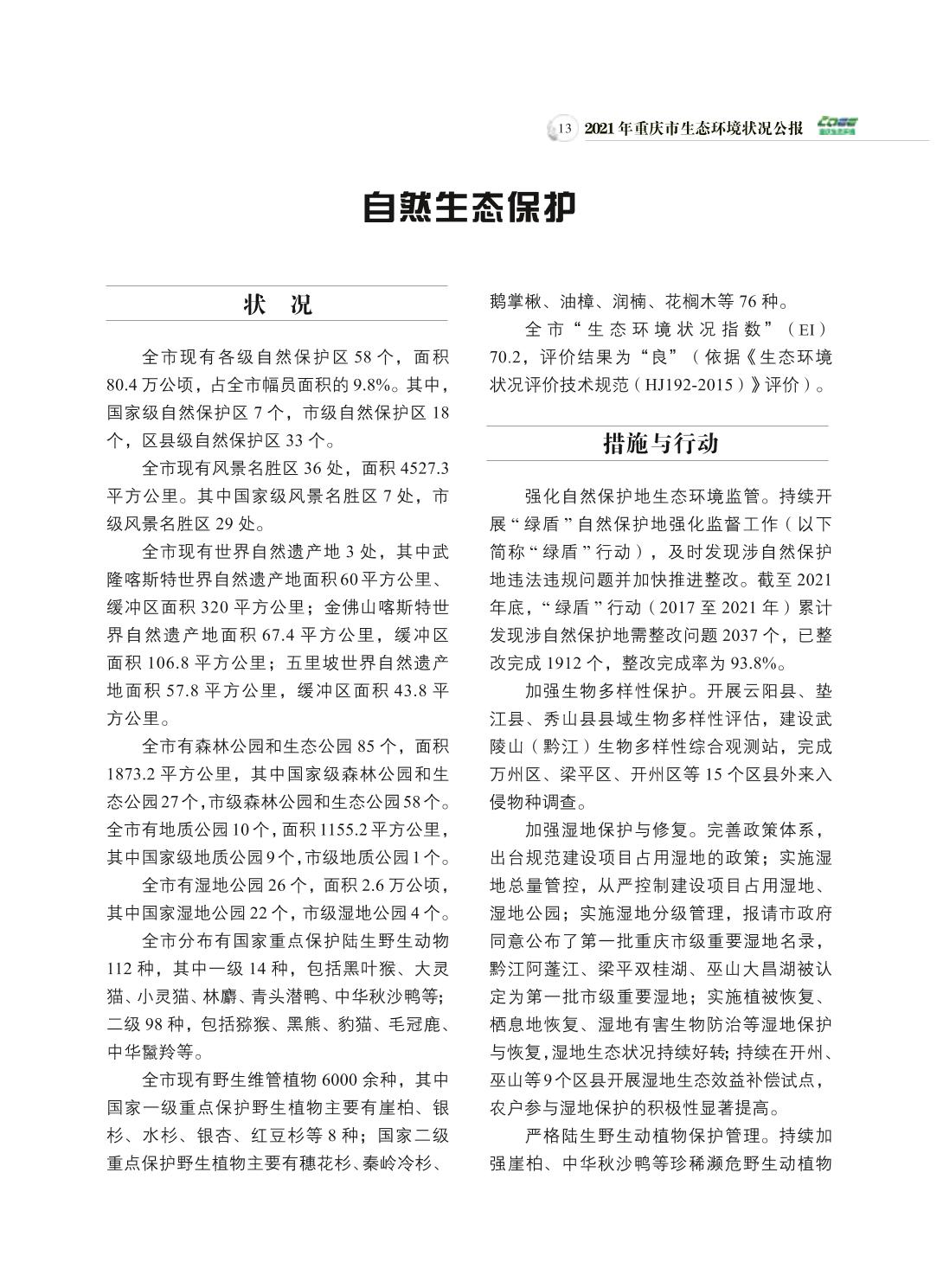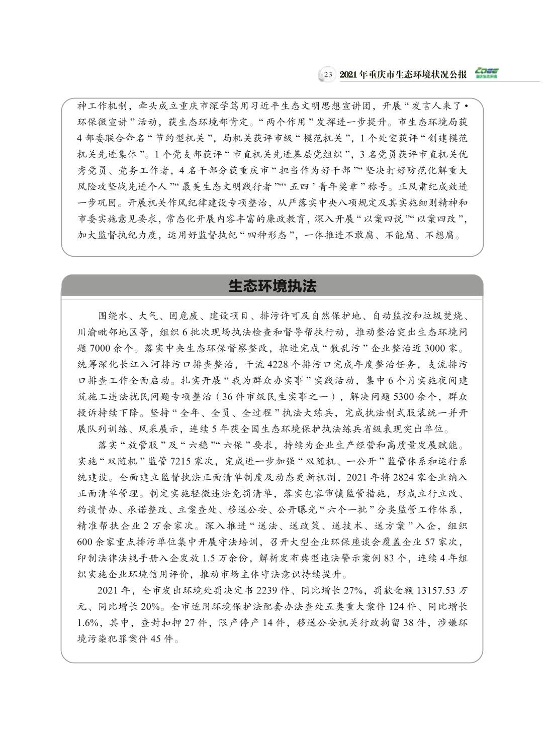 2021年重庆市生态环境状况公报