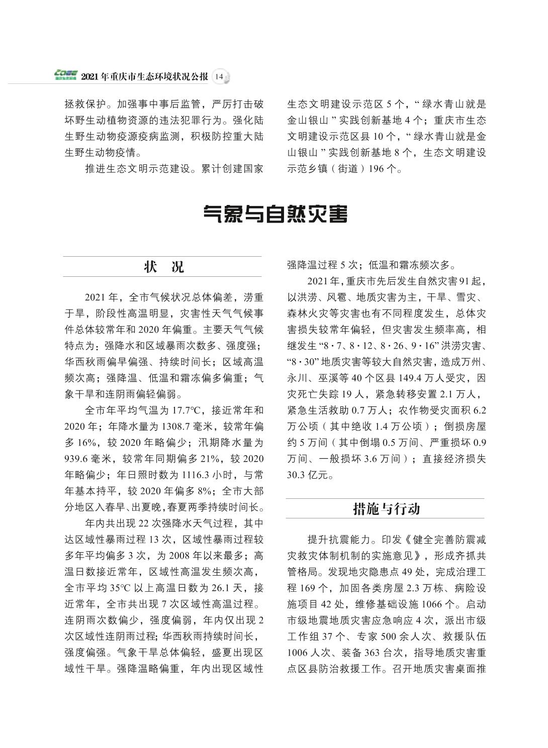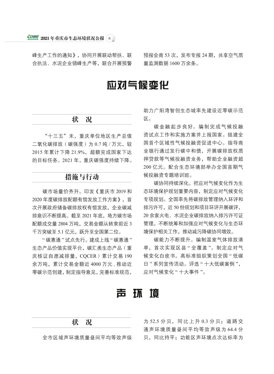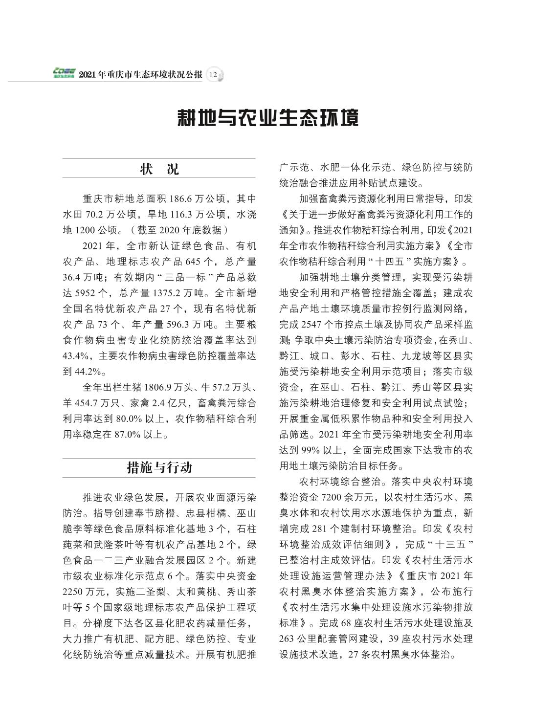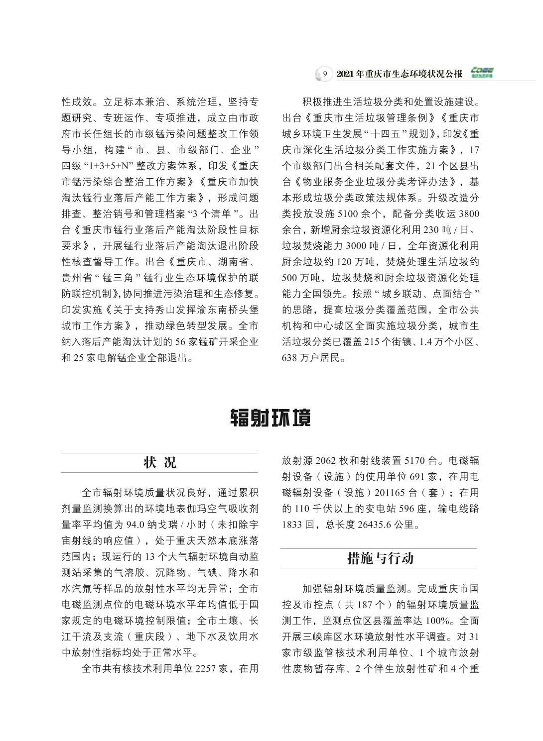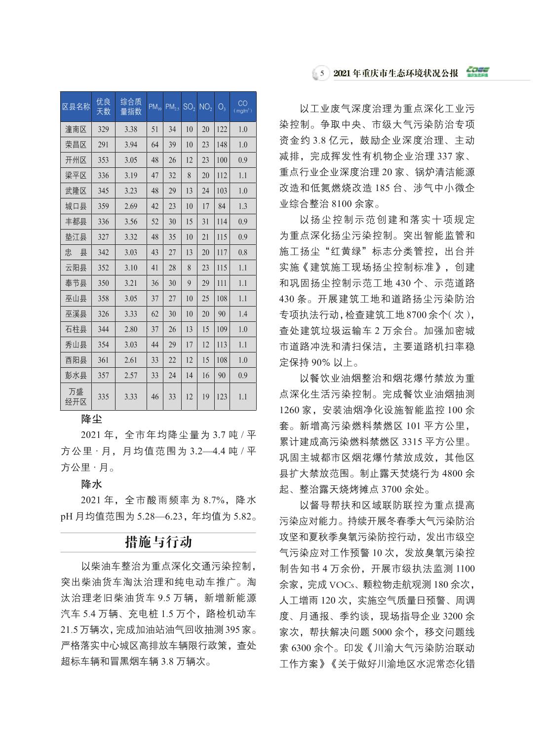 2021年重庆市生态环境状况公报