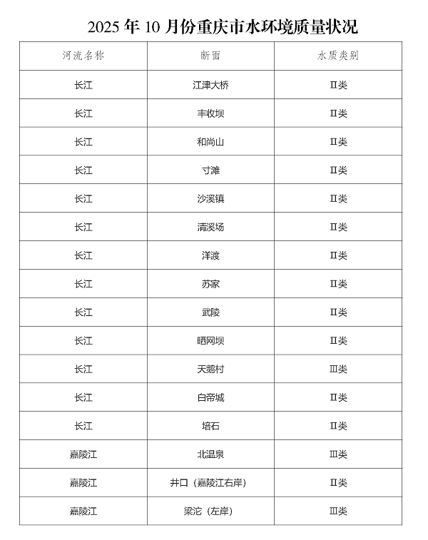 2025年10月份重庆市水环境质量状况
