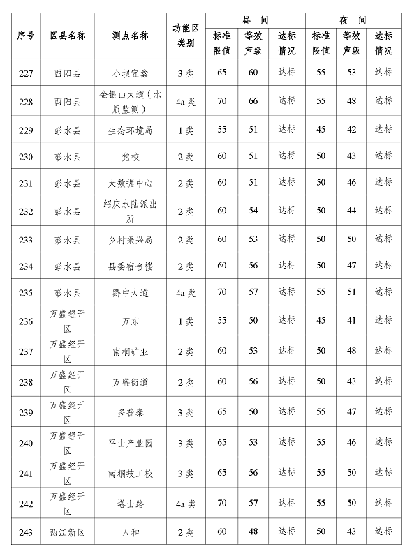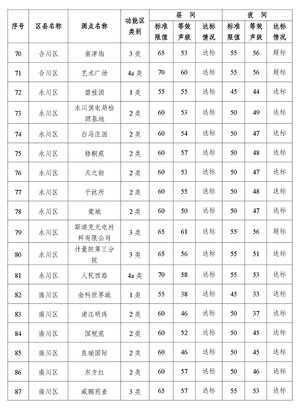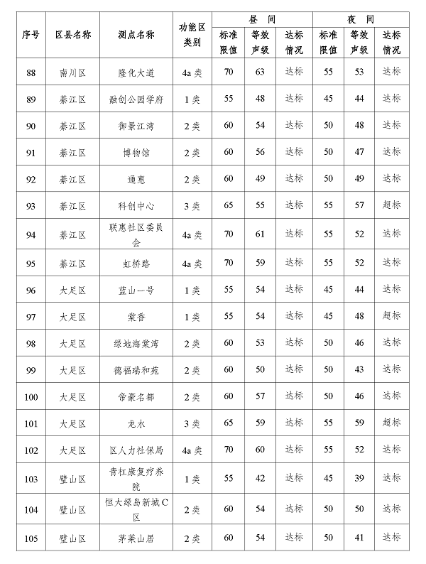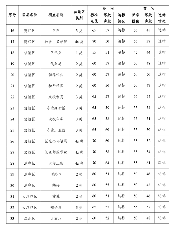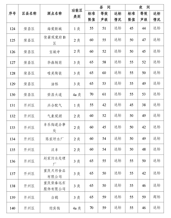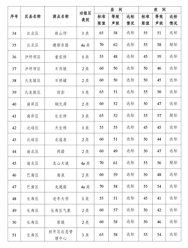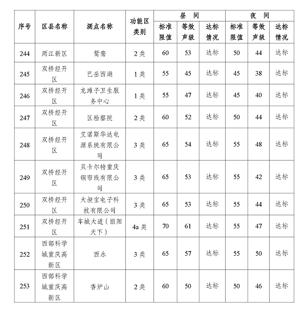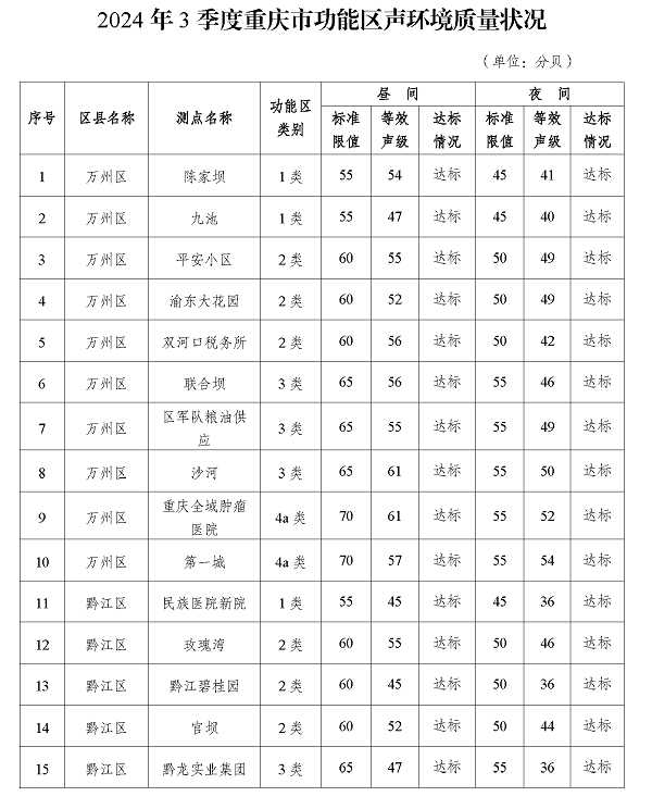 2024年3季度重庆市功能区声环境质量状况