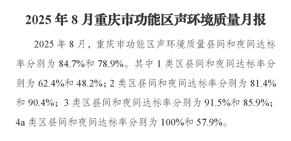 2025年8月重庆市功能区声环境质量月报