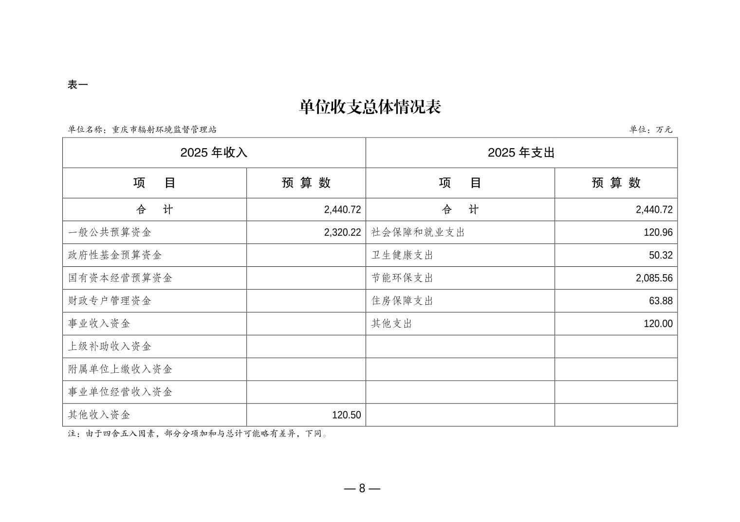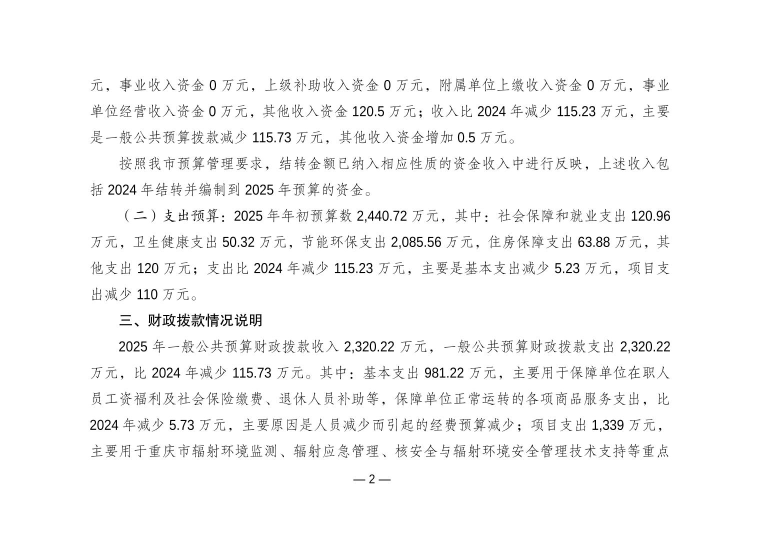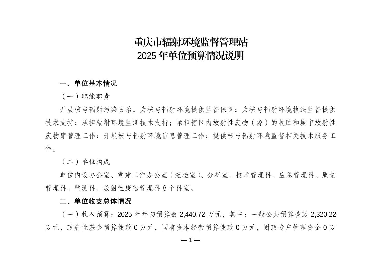 重庆市辐射环境监督管理站2025年单位预算情况说明