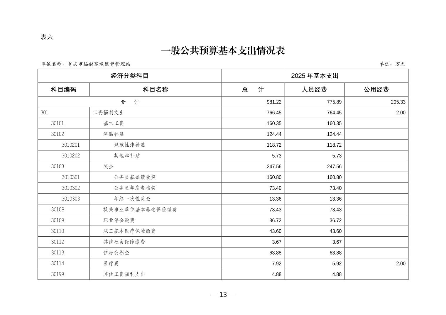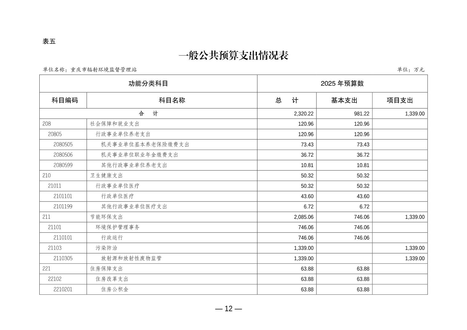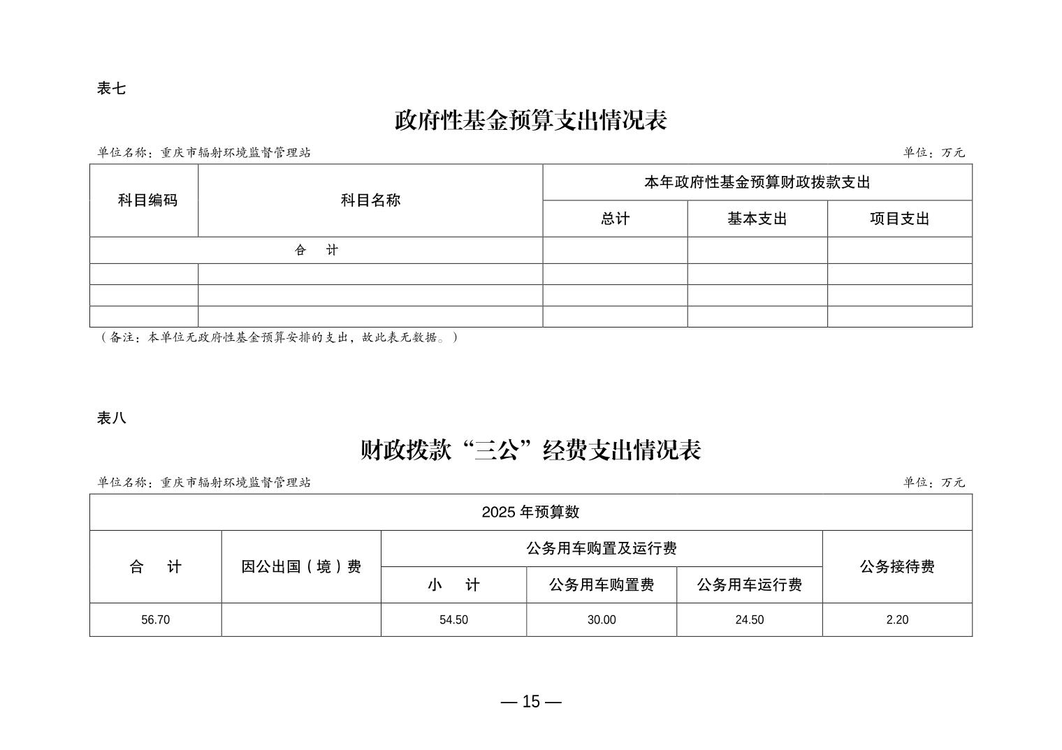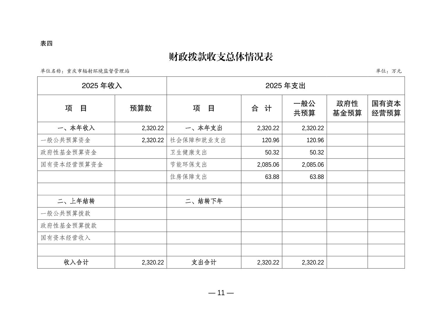 重庆市辐射环境监督管理站2025年单位预算情况说明