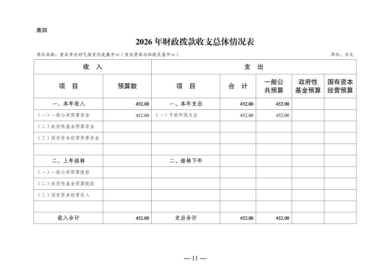 重庆市应对气候变化发展中心(重庆资源与环境交易中心)2026年单位预算情况说明