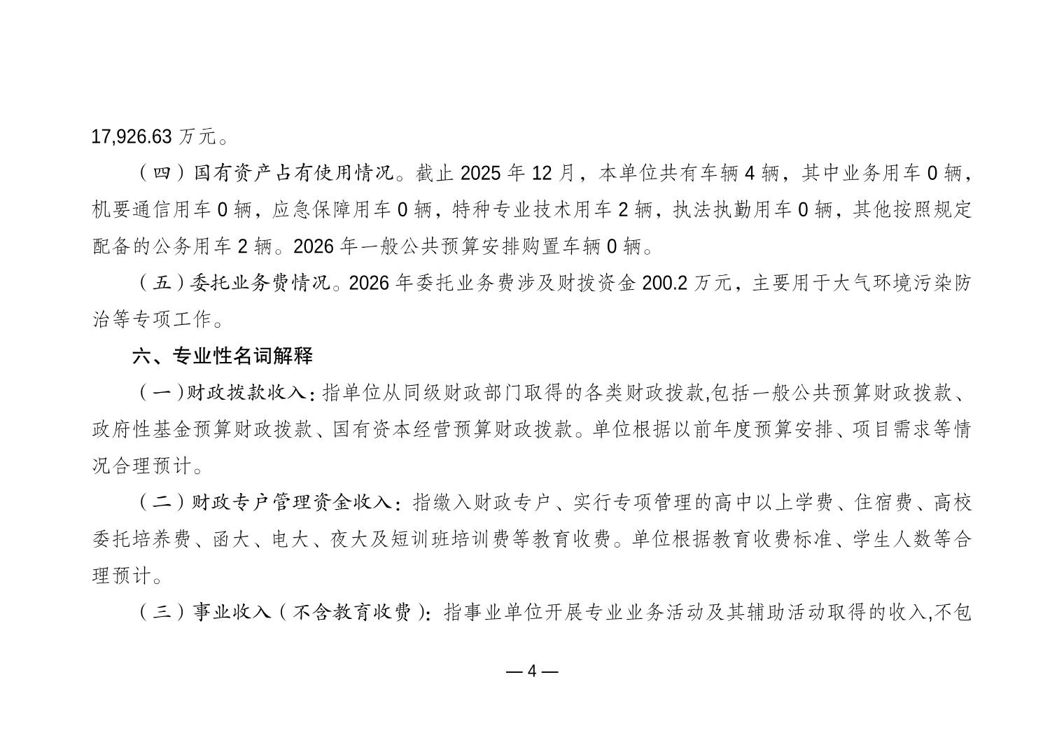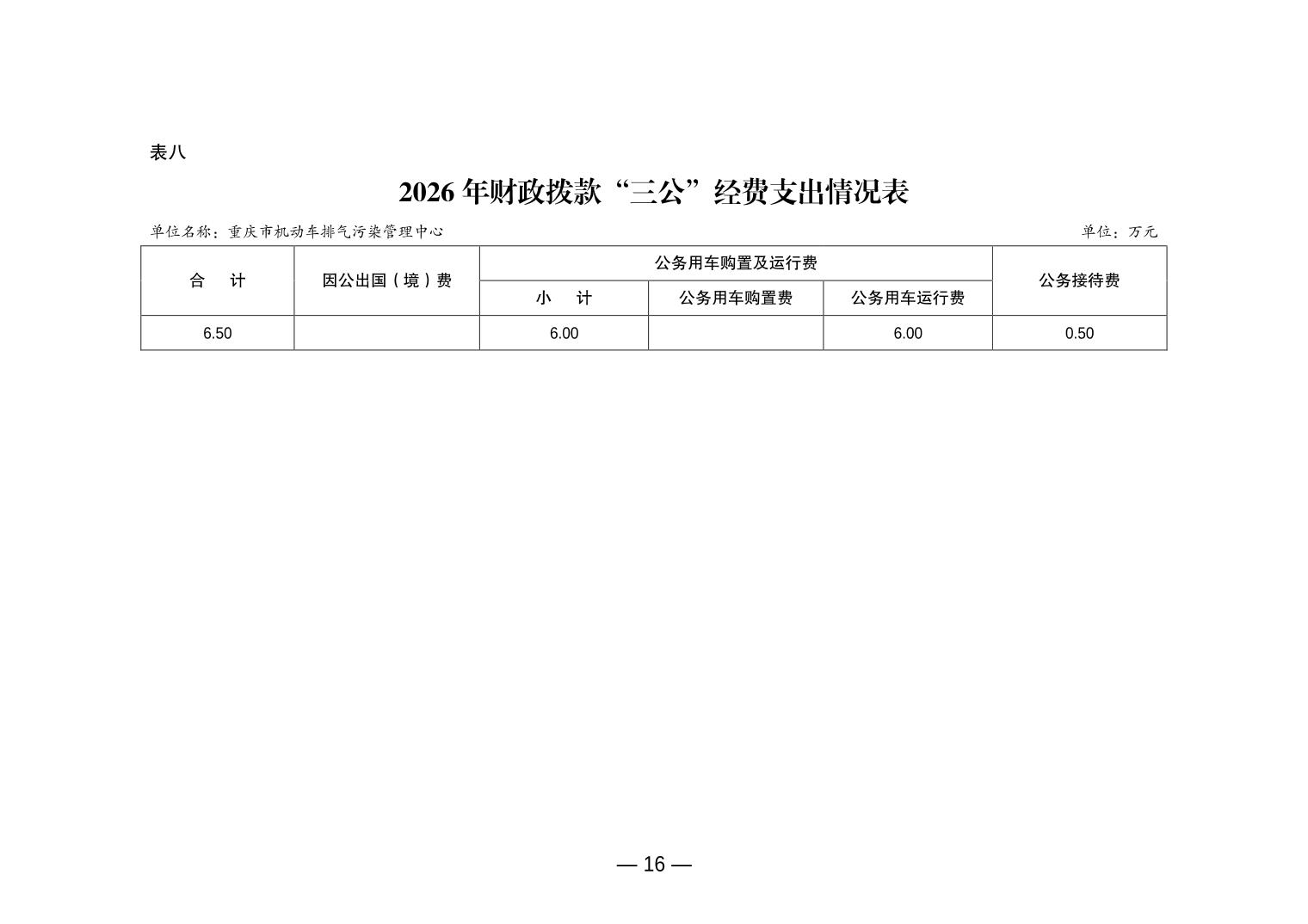 重庆市机动车排气污染管理中心2026年单位预算情况说明