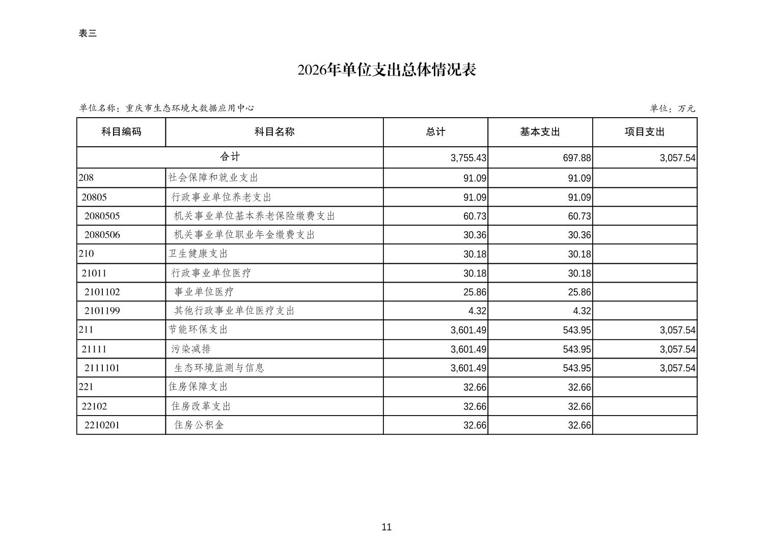 重庆市生态环境大数据应用中心2026年单位预算情况说明
