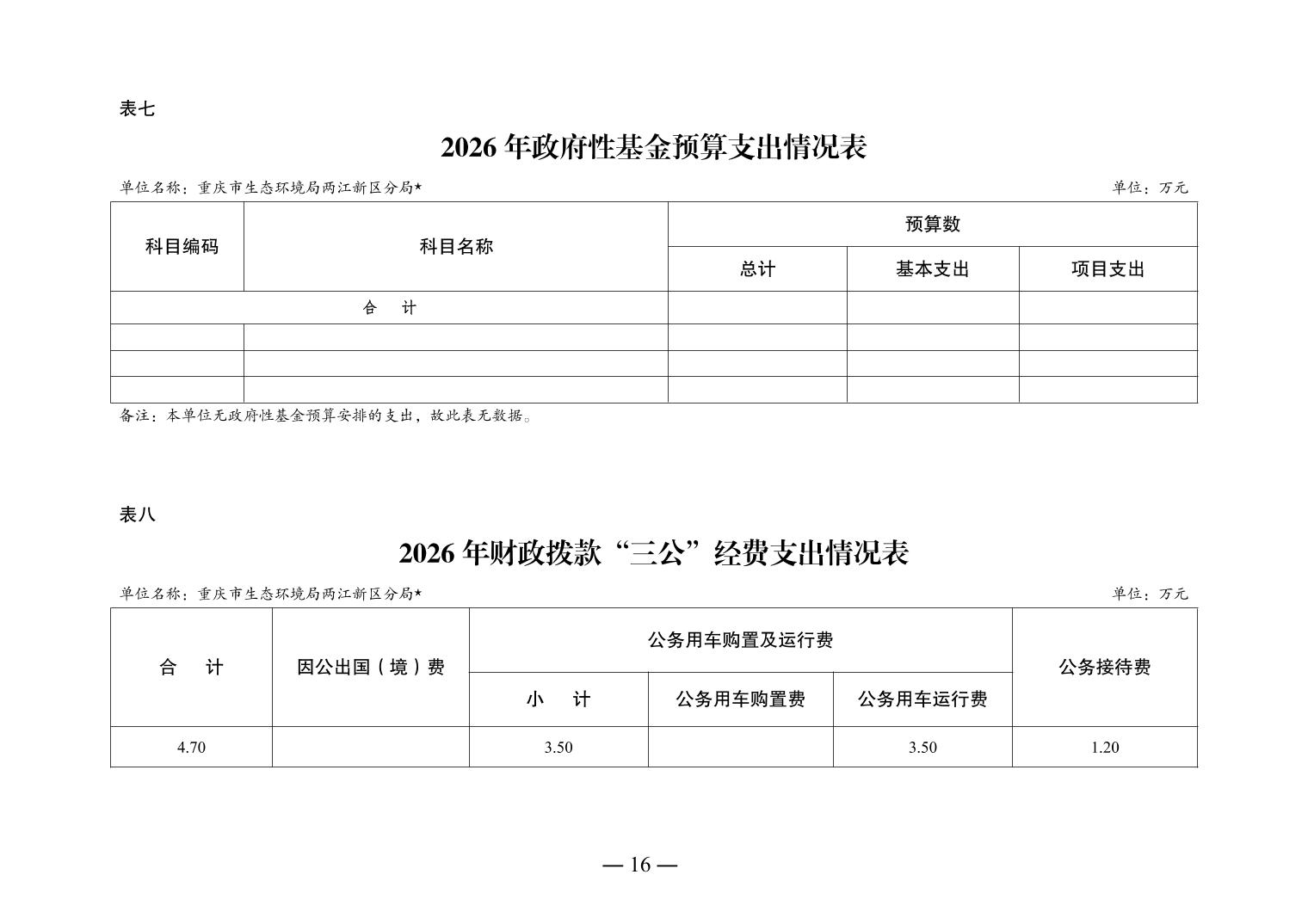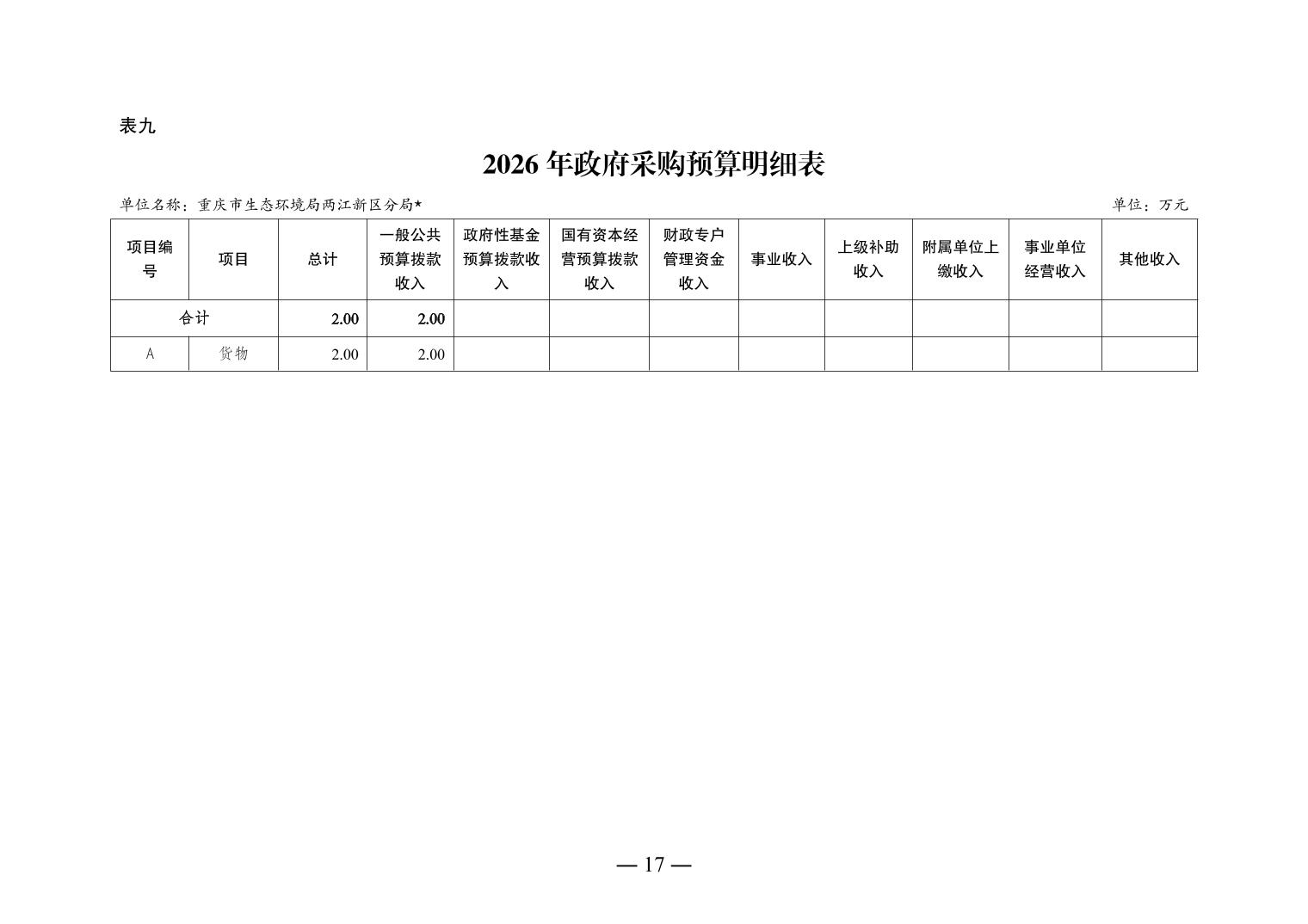 重庆市生态环境局两江新区分局2026年单位预算情况说明