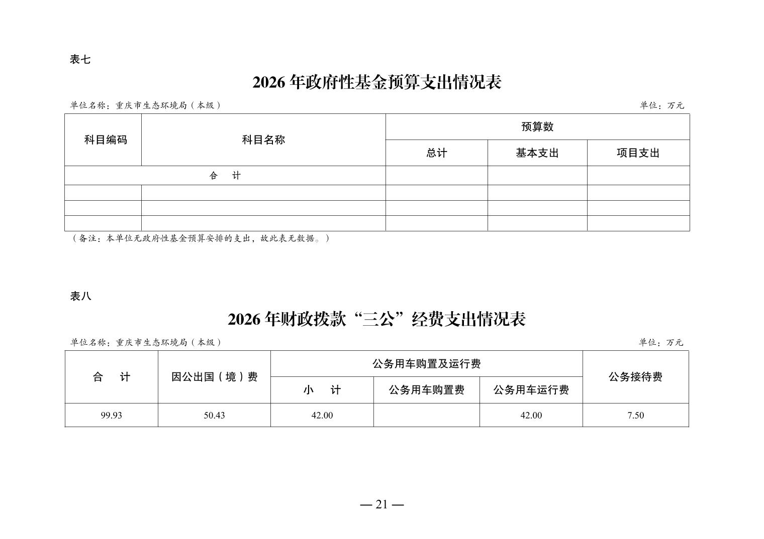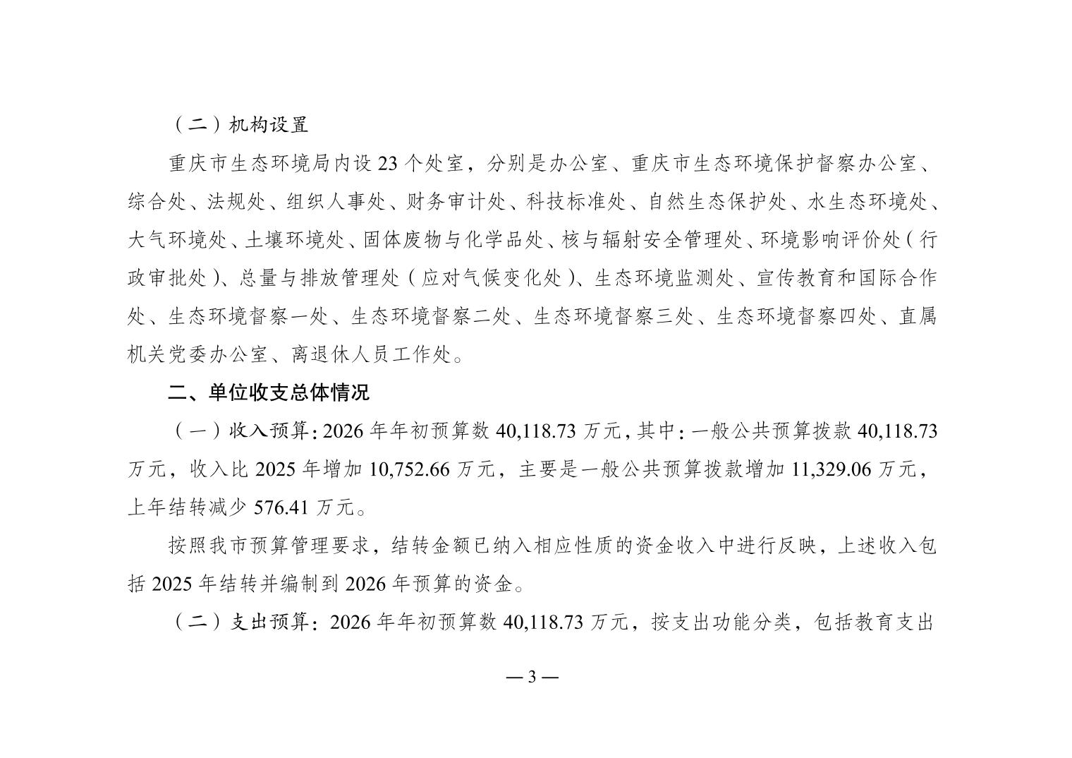 重庆市生态环境局(本级)2026年单位预算情况说明